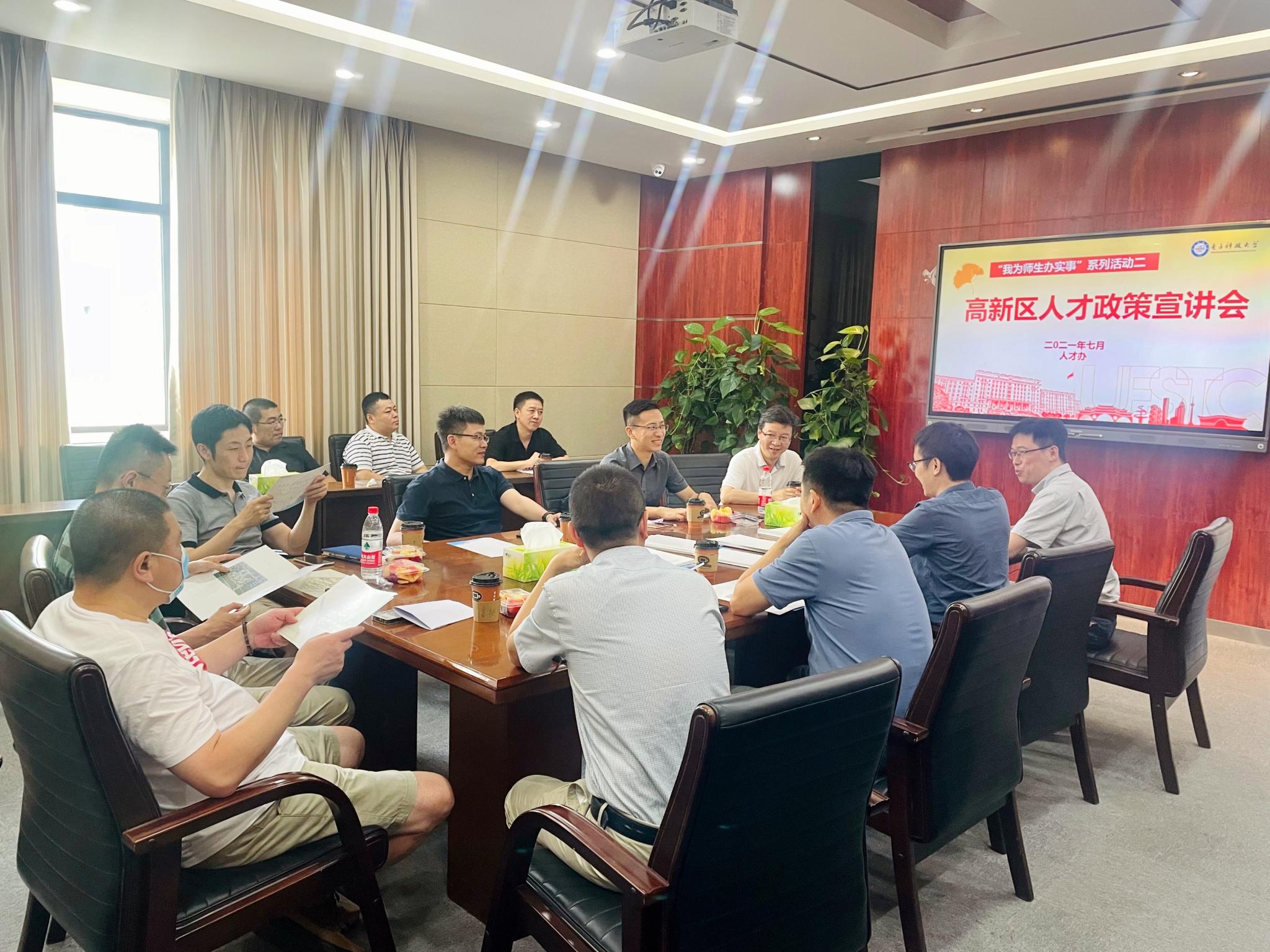 2021.07.19近日,公司人才办在科研楼B306A会议室开展了“我为师生办实事”系列活动,邀请了高新区人才局邓智文处长和桂语听澜人才公寓置业经理来院交流,为老师们讲解人才政策。本次活动吸引了公司16名老师参与,由田广和副经理主持。邓智文处长围绕成都高新区区域发展情况和人才政策为老师们进行了详细介绍,重点介绍了“金熊猫”人才政策,分别从人才分类、人才安居、人才创新、人才激励、人才引育、人才服务六大板块共十五条政策进行了...