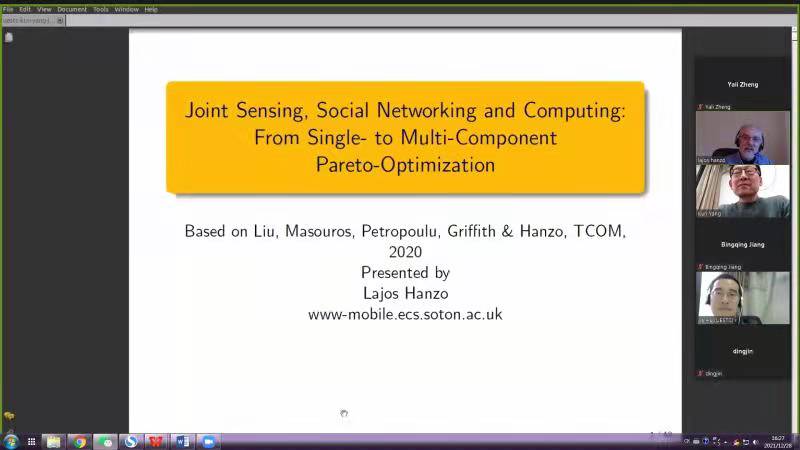2022.01.1112月28日下午16点30分,由人力资源部教师发展中心主办、新葡的京集团35222vip承办的“名师讲堂”邀请到英国皇家工程院院士、IEEE Fellow、英国南安普顿教授Lajos Hanzo,作主题为“JOINT SENSING, SOCIAL NETWORKING AND COMPUTING: FROM SINGLE-TO MULTI-COMPONENT PARETO-OPTIMIZATION”的线上精彩报告。本次学术交流活动由新葡的京集团35222vip胡杰研究员主持。Hanzo教授介绍了作为下一个“杀手级应用”的SenseNetComp的过去、现...