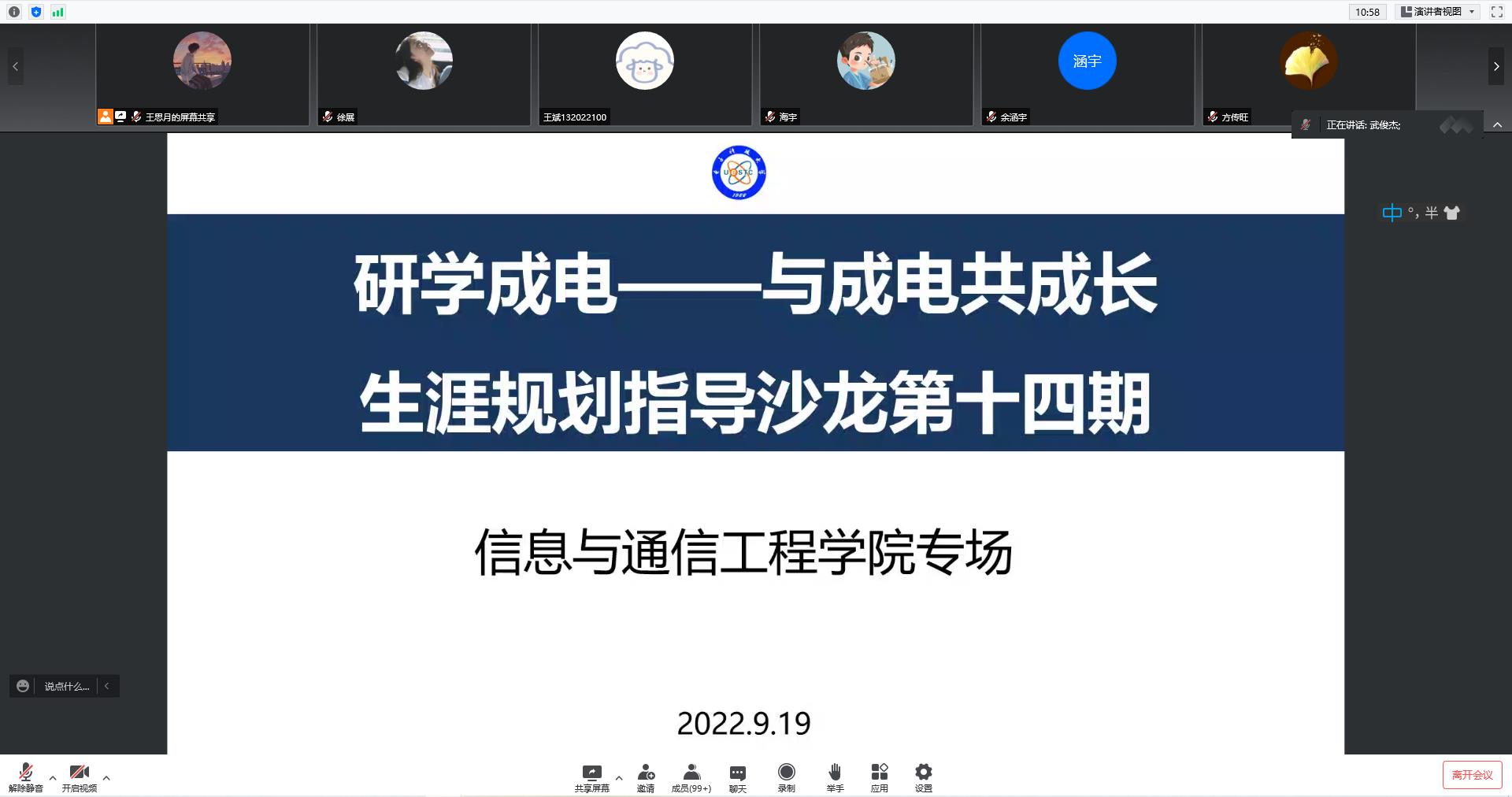 2022.09.249月19日,由新葡的京集团35222vip员工发展指导中心、研究生招生办公室共同推出的“研学成电 | 与成电共成长”系列生涯规划指导沙龙——新葡的京集团35222vip相关学科专场举办。本次沙龙邀请了新葡的京集团35222vip电子工程系主任武俊杰教授、海宇博士生两位嘉宾作专场分享。 武俊杰教授简要介绍了公司的基本情况,并从自身学习与科研工作经历出发,指出兴趣是最好的老师。他以自己的员工为例,讲述了兴趣对于人的激励作用,并表示希望大家都...