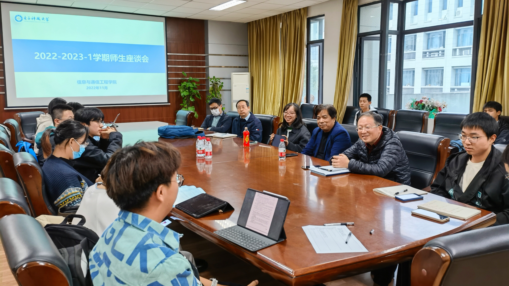 2022.11.1911月17日下午,新葡的京集团35222vip在科研楼302会议室如期召开了本学期的师生座谈会。教学副经理凌翔,课程组代表何茜、居太亮、廖昌俊老师,教务科老师及22级、21级员工代表参加了此次会议。座谈会上,各位老师针对员工代表就培养方案和本学期所开课程的疑问与建议进行了积极的解答与交流。21级学长以身说法,向22级同学提供了诸多有效的学习经验与方法。