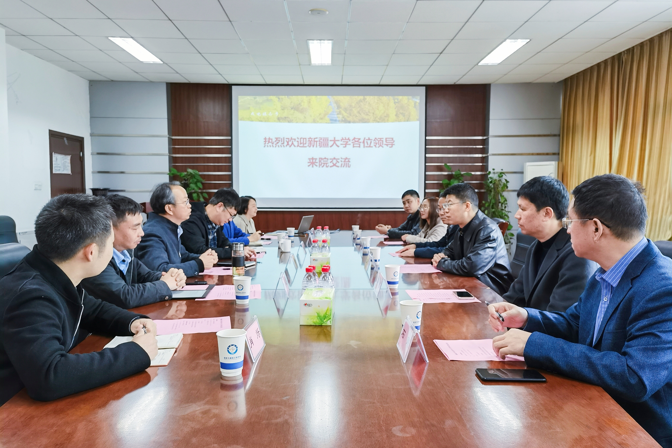 2023.03.303月24日上午,公司对口支援高校新疆大学信息科学与工程公司党委书记汪烈军一行来公司访问,双方围绕人才培养、团队建设、科研管理、团队队伍建设等方面进行了深入交流。