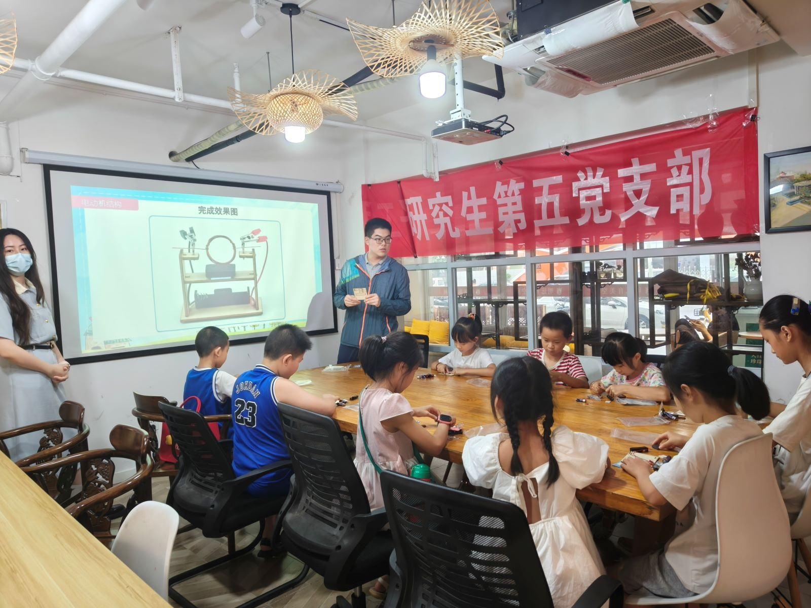 2023.09.06习近平总书记指出,“科技创新、科学普及是实现创新发展的两翼,要把科学普及放在与科技创新同等重要的位置”。为响应党的号召,8月23日,电子工程系研究生第五党支部在明远育美空间开展了“青禾讲堂”系列科普活动之“揭秘电动机”,围绕电动机的工作原理,深入浅出地为小朋友进行了讲解和实操。在分享会上,支部杨博文同志首先向参加的小朋友介绍了电动机的基本原理,并通过简单的实例解释了电动机的工作过程。随后,他向小朋...
