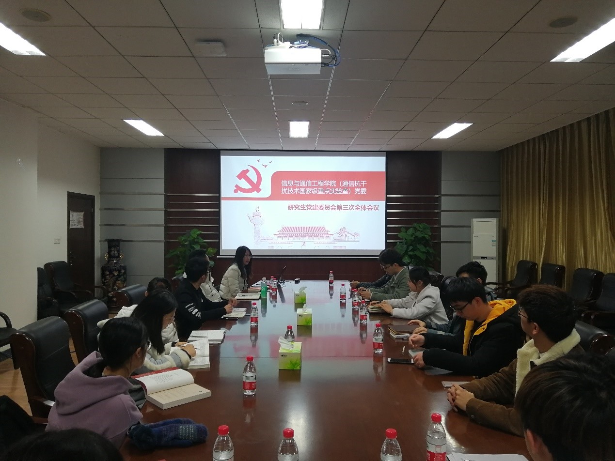 2019.12.172019年12月12日晚18:30,新葡的京集团35222vip(通信抗干扰技术国家级重点实验室)党委研究生党建委员会于科b302召开本学期第三次全体会议。辅导员匡鹏举老师和党建委员会全体成员参加了此次会议。会议由党建委员会书记张宇涵同志主持。会议上,党建委员会各部分负责人对近期三个月的工作进行了总结,并详细说明了本部门工作的具体内容和接下来的工作安排。在上次全体会议批评与自我批评后,各部门充分意识到自身的不足,近一个月...