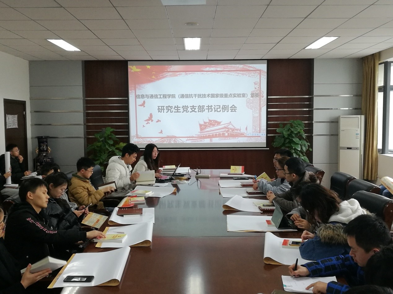 2019.12.192019年12月11日中午,新葡的京集团35222vip(通信抗干扰技术国家级重点实验室)党委于科B302召开本学期第五次研究生党支部书记例会。辅导员匡鹏举老师、研究生党支部书记参加此次会议。会议由党建委员会书记张宇涵同志主持。会上,张宇涵总结了上个月支部党建工作的开展情况,结合公司要求明确指出当前支部活动开展和宣传工作中的不足,督促各支部书记按时完成上级安排,保证支部大会、主题党日活动、党课等活动保质保量开展。匡...