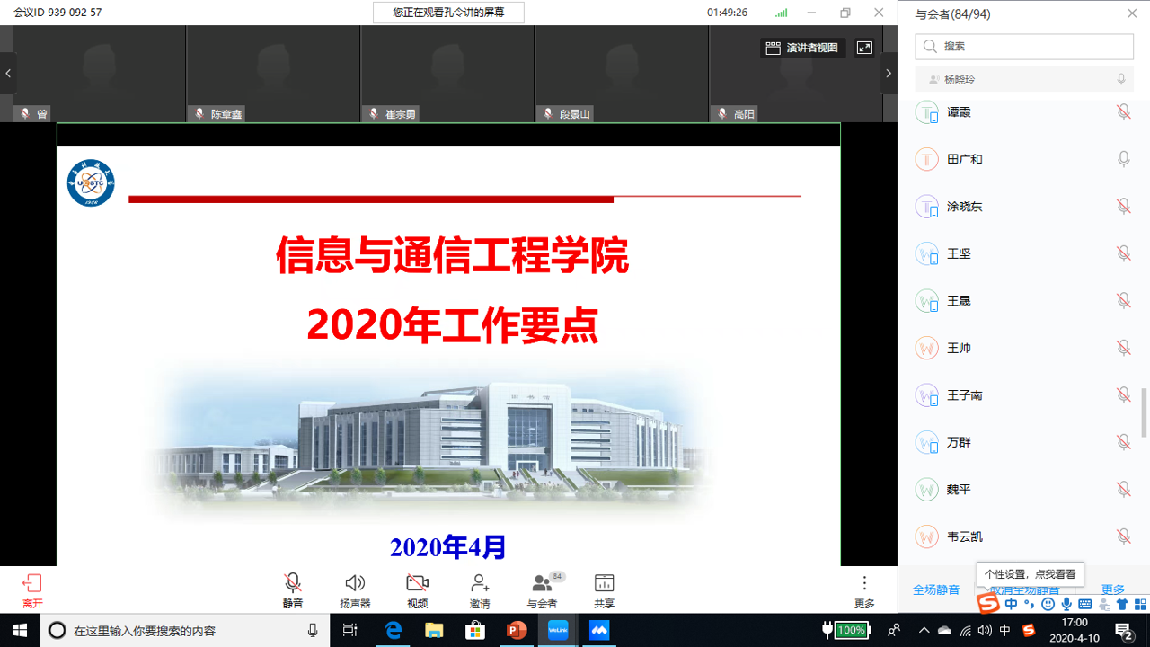 2020.04.144月10日下午,新葡的京集团35222vip在线上召开公司教师代表大会。公司领导、系主任、教工党支部书记、工会委员、各团队负责人、各专家委员会委员等教师代表参会,会议由党委副书记杨晓玲主持。党委书记李玉柏通报了公司2020年工作要点,从坚决打赢疫情防控的人民战争、全力推进主题教育整改任务和巡视反馈意见整改落实、深入学习贯彻十九届四中全会精神、全面提高人才培养质量、对党建和全面从严治党工作进行部署等几个方面详细传...