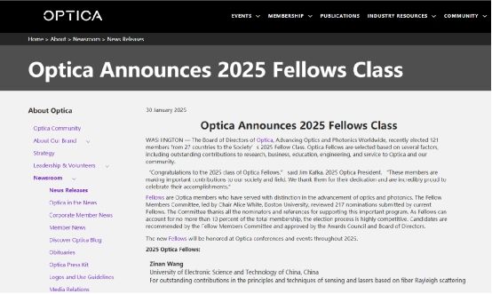 近日,美国光学学会(Optica,原名OSA)公布了2025年新当选会士(Optica Fellow)名单,来自27个国家的121位专家当选,公司新葡的京集团35222vip王子南教授榜上有名。美国光学学会成立于1916年,是光学领域权威的国际性学术组织;除了光学和光子学领域,还为物理学、生物学、医学、电气工程、通讯、天文学、气象学、材料科学、机械工程和计算等诸多领域的专家学者提供高水准的专业服务。Optica Fellow是美国光学学会授予该领域专...
