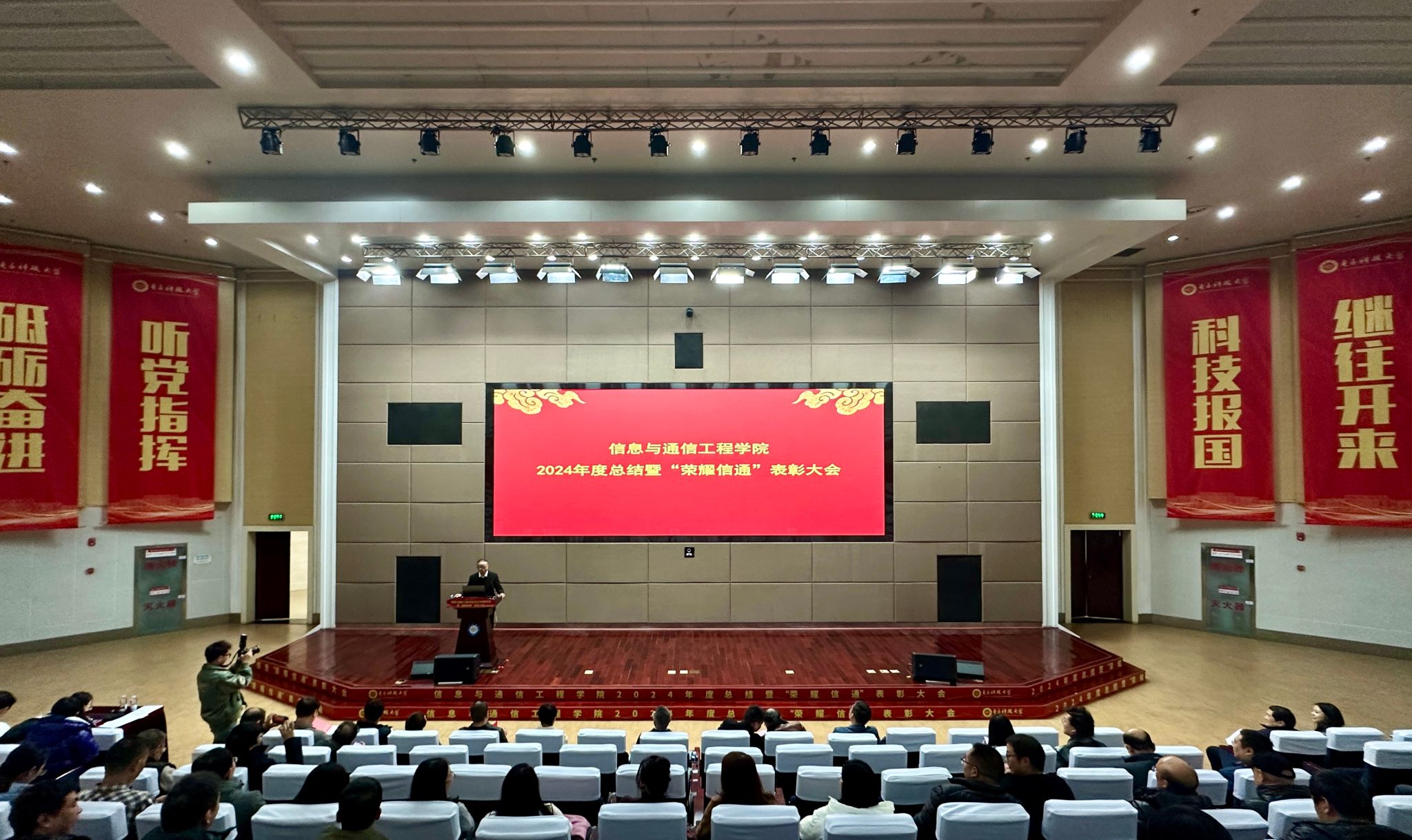 2025.01.191月15日,新葡的京集团35222vip2024年度总结暨“荣耀信通”表彰大会在求实厅举行。副董事长徐红兵出席大会,公司督导组成员、公司全体领导和教职工参加会议。本次大会分为两个部分,第一部分是公司领导班子述职述廉,由公司党委书记冷甦鹏主持。冷甦鹏围绕政治思想建设、事业发展合力、党风廉政建设和下一步工作思路四个方面代表领导班子做总结陈述。随后,从开展理论学习情况、履职尽责情况和党风廉政情况三个方面进行个人述职。院...