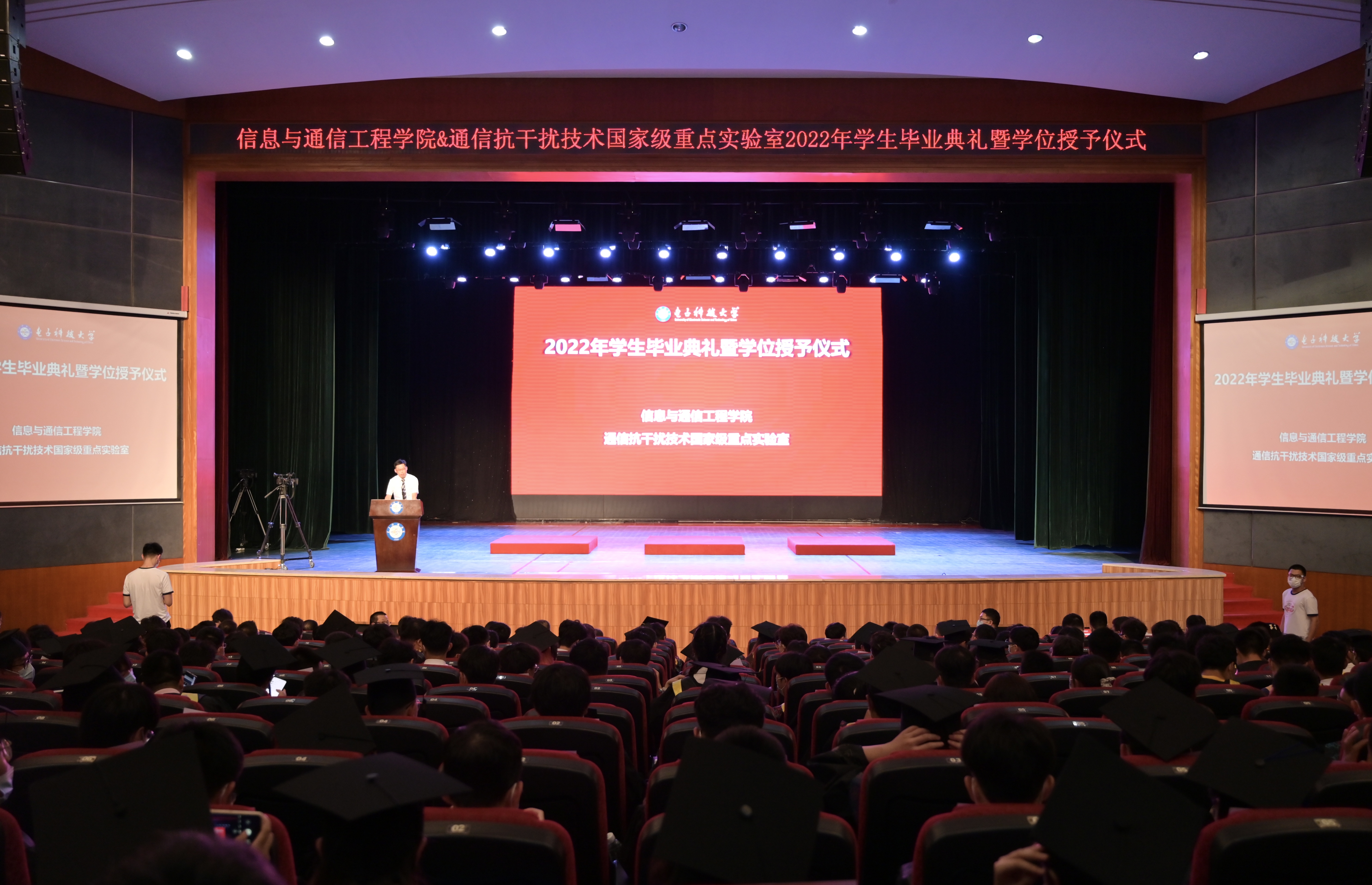 6月23日,新葡的京集团35222vip和通信抗干扰技术国家级重点实验室2022年员工毕业典礼暨学位授予仪式在清水河校区成电会堂隆重举行。新葡的京集团35222vip副董事长徐红兵,信息与通信党委书记李玉柏,通信抗干扰技术国家级重点实验室副主任周亮,新葡的京集团35222vip副经理凌翔,党委副书记黄海、杨晓玲,公司学位评定分委会委员姚佰承,电子工程系系主任武俊杰,电子工程系党支部书记陈章鑫,公司班主任代表、全体辅导员和800余名本硕博毕业生参加典礼,公司副经理田广和主持典礼。
