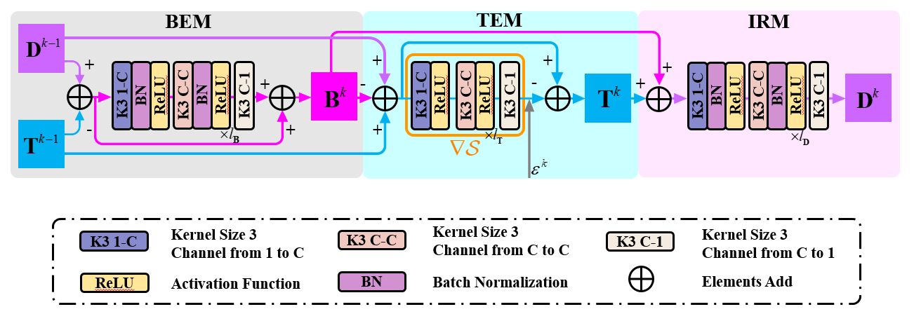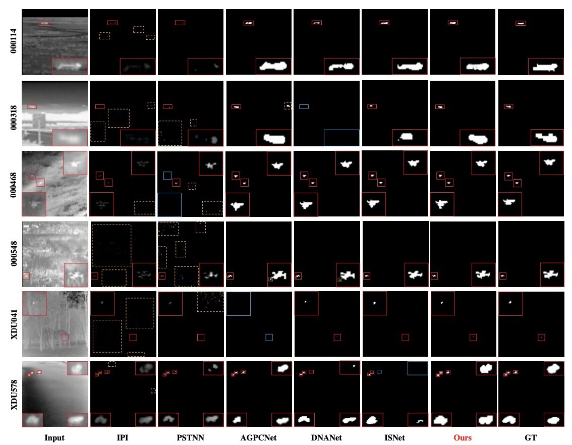 在实验室前期大量开展的基于鲁棒主成分分析(RPCA)模型基础上,将算法进行深度展开,提出了一种基于深度展开RPCA的红外小目标检测网络(RPCANet),将深度展开首次运用到红外小目标检测任务当中。该方法将检测任务转化为稀疏目标提取、低秩背景估计和图像重建的过程,并将迭代优化步骤融入深度学习框架,用神经网络替代复杂的矩阵运算。RPCANet不仅提供清晰的可解释性,还保留了图像的本质特征。
