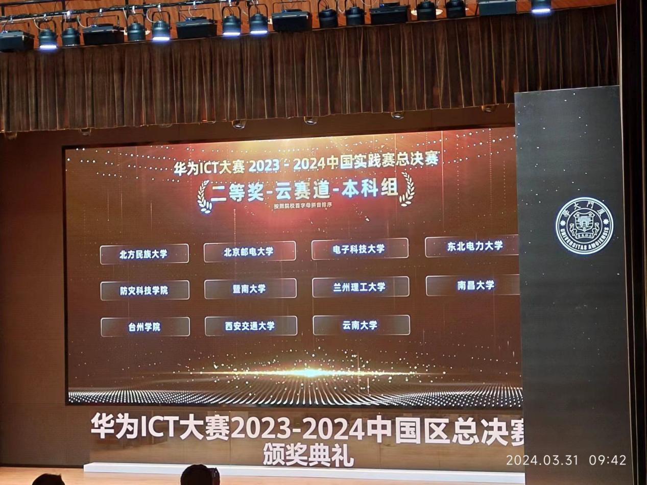 2024年3月30日--31日,第八届华为ICT大赛2023年--2024年全国总决赛暨颁奖典礼在厦门大学翔安校区举行。在实践赛道中,公司4支代表队以四川省本科组一等奖进入全国总决赛,最终分别获得计算赛道本科组全国一等奖,AI赛道本科组全国一等奖和二等奖,云计算赛道全国二等奖。创新赛道中,公司有3支代表队进入全国总决赛,最终获得1个全国二等奖和2个全国三等奖,获奖队伍数量居全国高校之首。