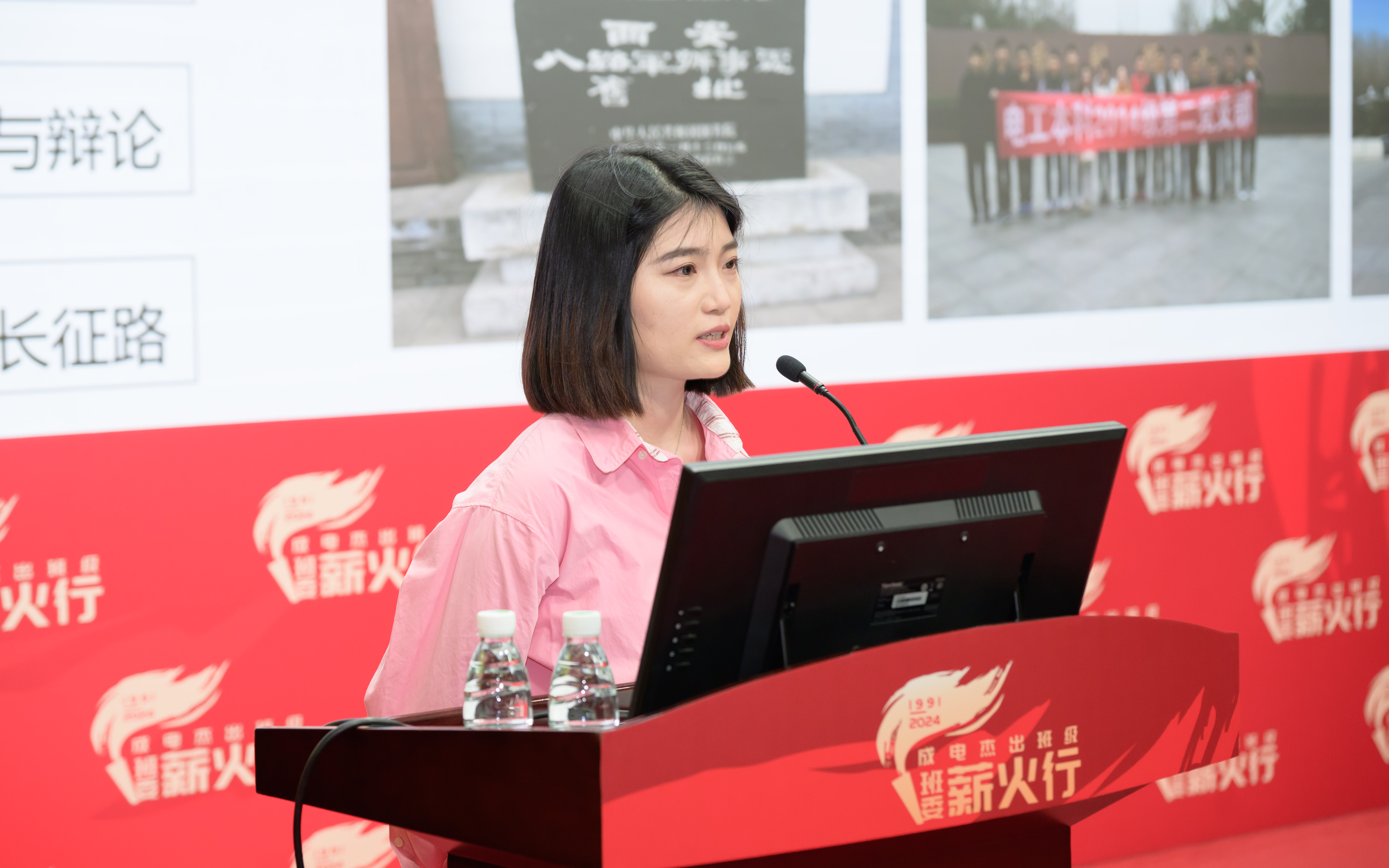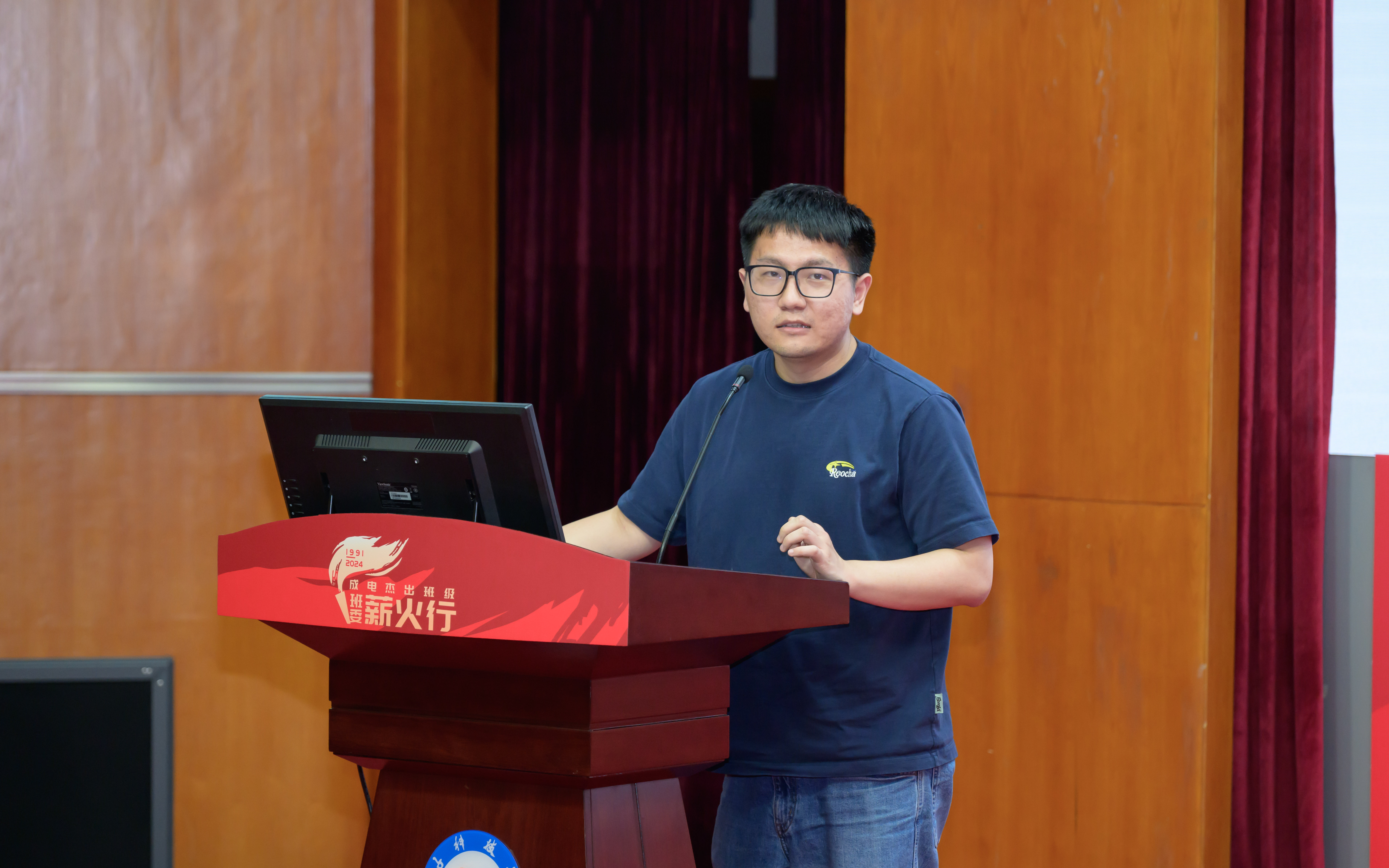 04级20班团支书徐旭光围绕班级建设和个人成长展开分享,向大家讲述由导师、导生、班委、班级成员构成的班级共同体,全员参与制定奋斗目标和班级制度的凝聚力,“一个都不落下”的日常学习帮扶模式,以及丰富多彩的党团活动。大屏幕上琳琅满目的奖杯奖状、班级同学在各重点领域发光发热的成果展示,就是发挥班级作用带动个人成长成才的最好证明。他说,班集体与个人成长相依相存、相互促进,希望同学们让集体优秀,让自己在优秀的集体中成长,未来也在科技领域大显身手。
