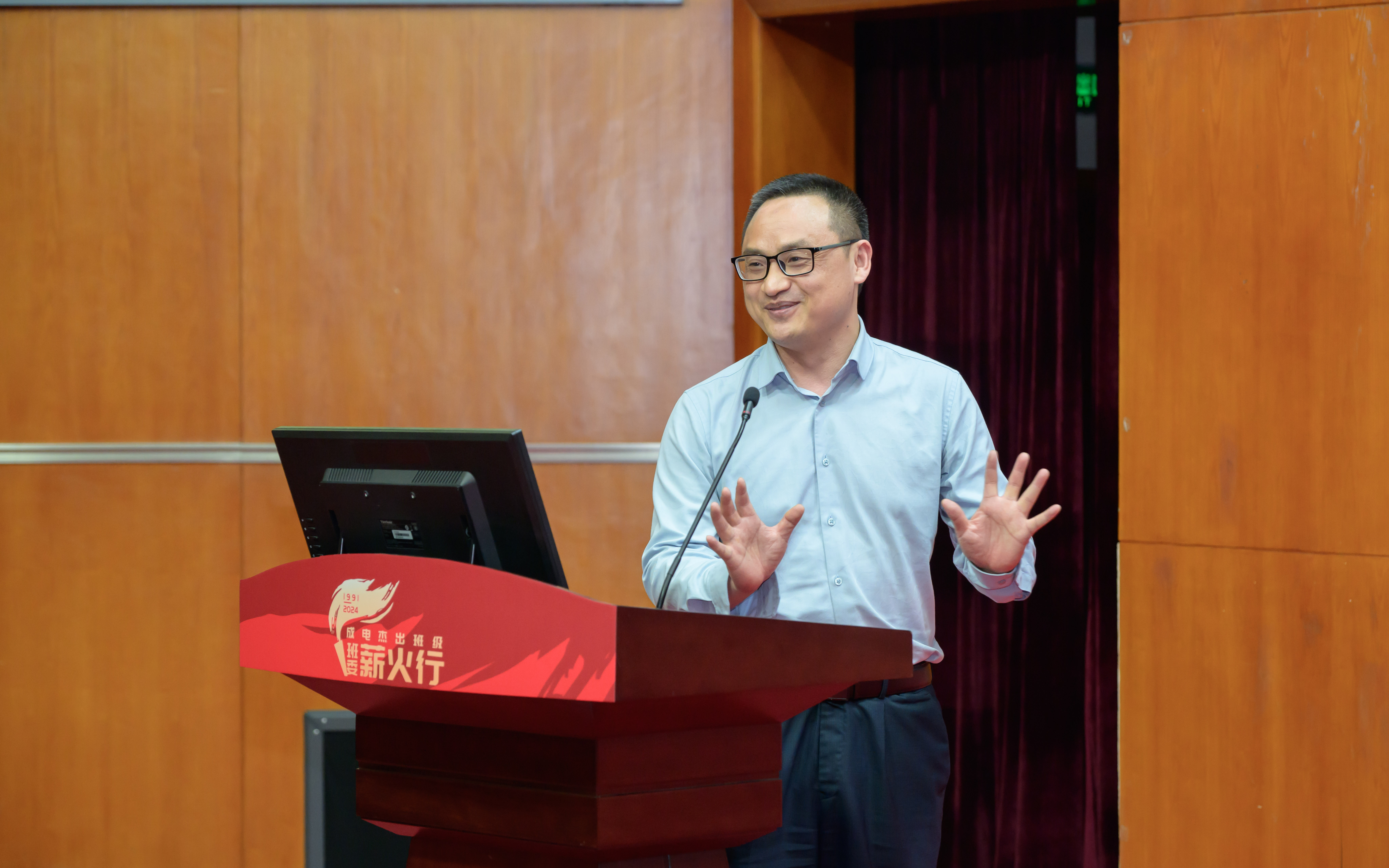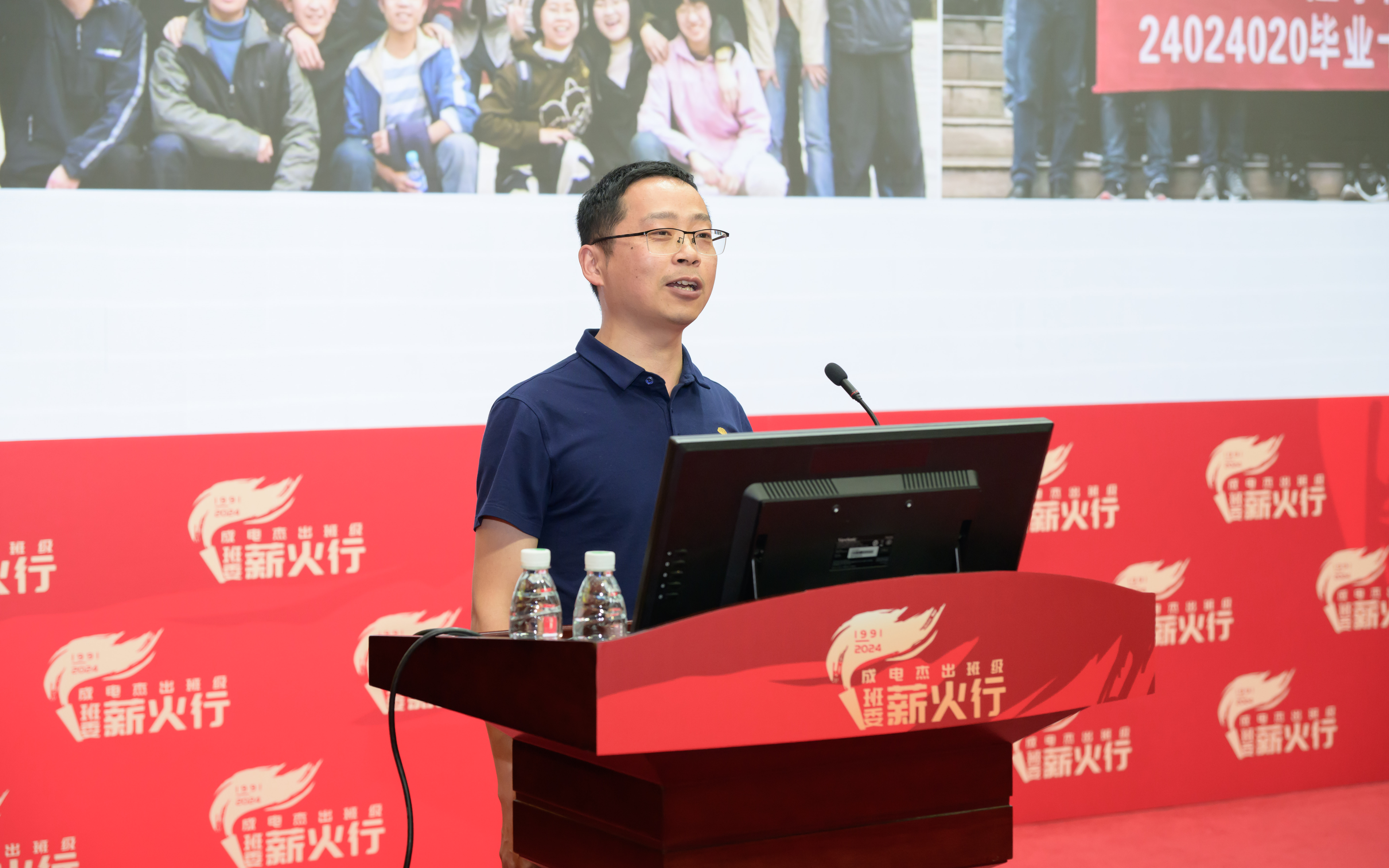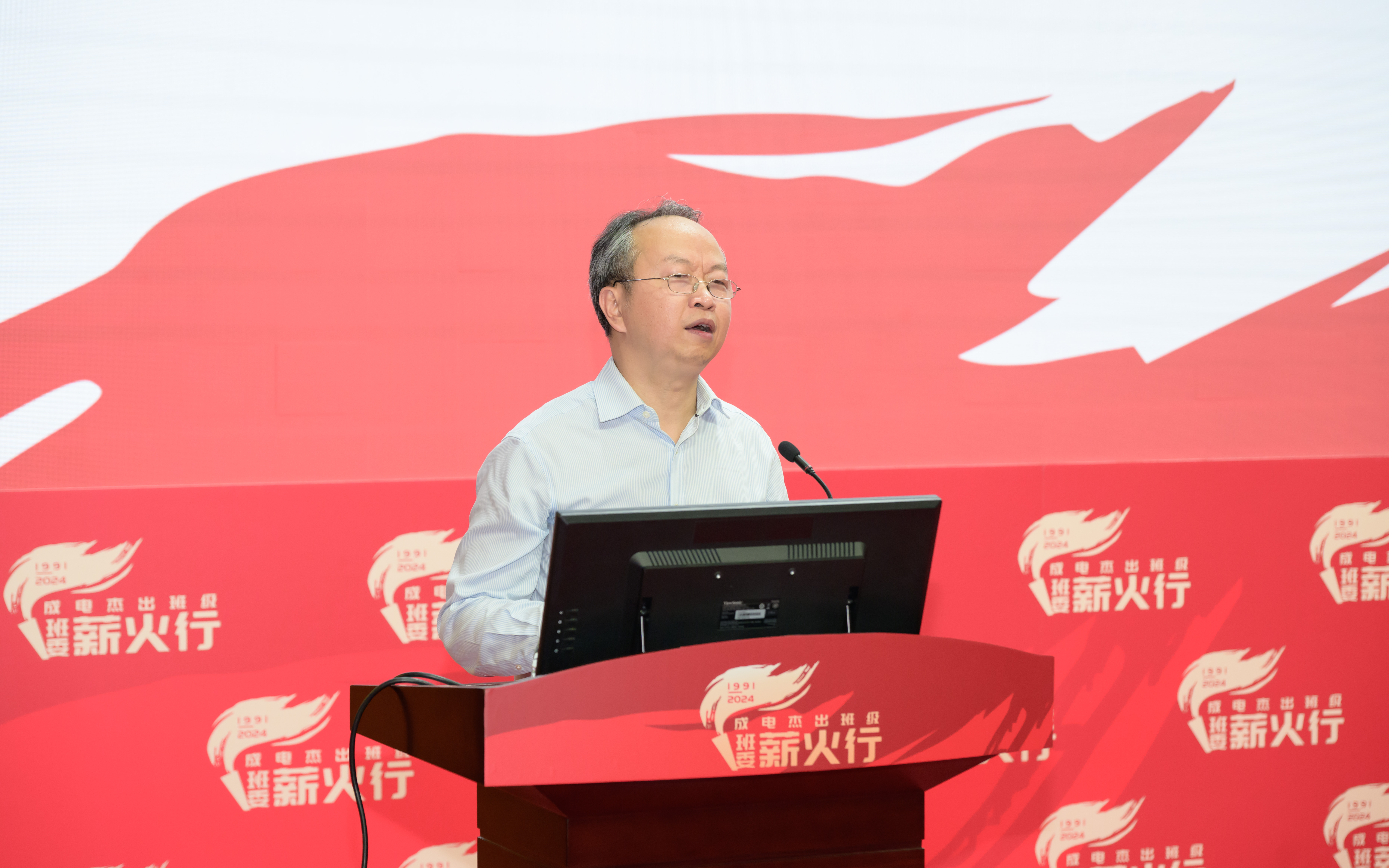 94级2班班副班长游世林从“老员工活记忆深刻两三事”讲起,并肩军训的难忘回忆、全班积极提交入党申请书的上进氛围、图书馆和教室争先占座的浓厚学风……他说,大学养成的学习习惯和与班级共同成长的成电时光是他人生中的宝贵财富。从在南京14所参与神舟一号雷达跟踪系统的设计,到加入中兴通讯,成为5G、6G安全标准牵头人,他表示,母校带给自己一生受用的品德和知识,激励着他不断攀登,为国家安全事业做出自己的贡献。同时表示期待同学们加入国防产品、未来6G通讯产品等研发工作,解决目前最棘手的卡脖子问题,为民族复兴大业做出新时代的新贡献。