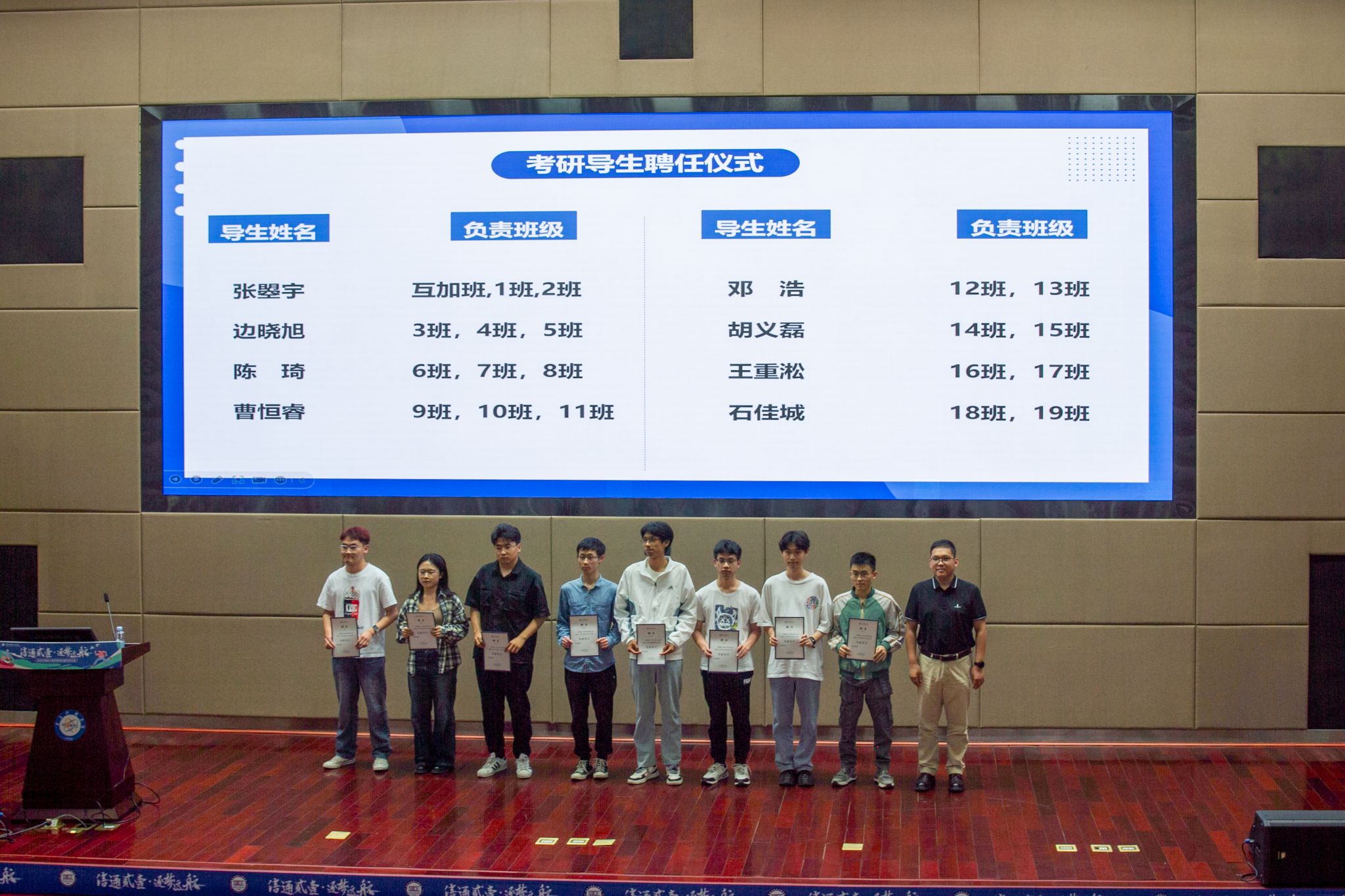 大会伊始,原创微视频《不拼一定后悔》点燃了现场同学们对未来的渴望与激情。随后,耿宝莹副书记为考研导生颁发聘书,期待21级信通员工以他们为榜样,不畏艰难,勇攀高峰,努力传承“听党指挥,科技报国”的学科文化精神。