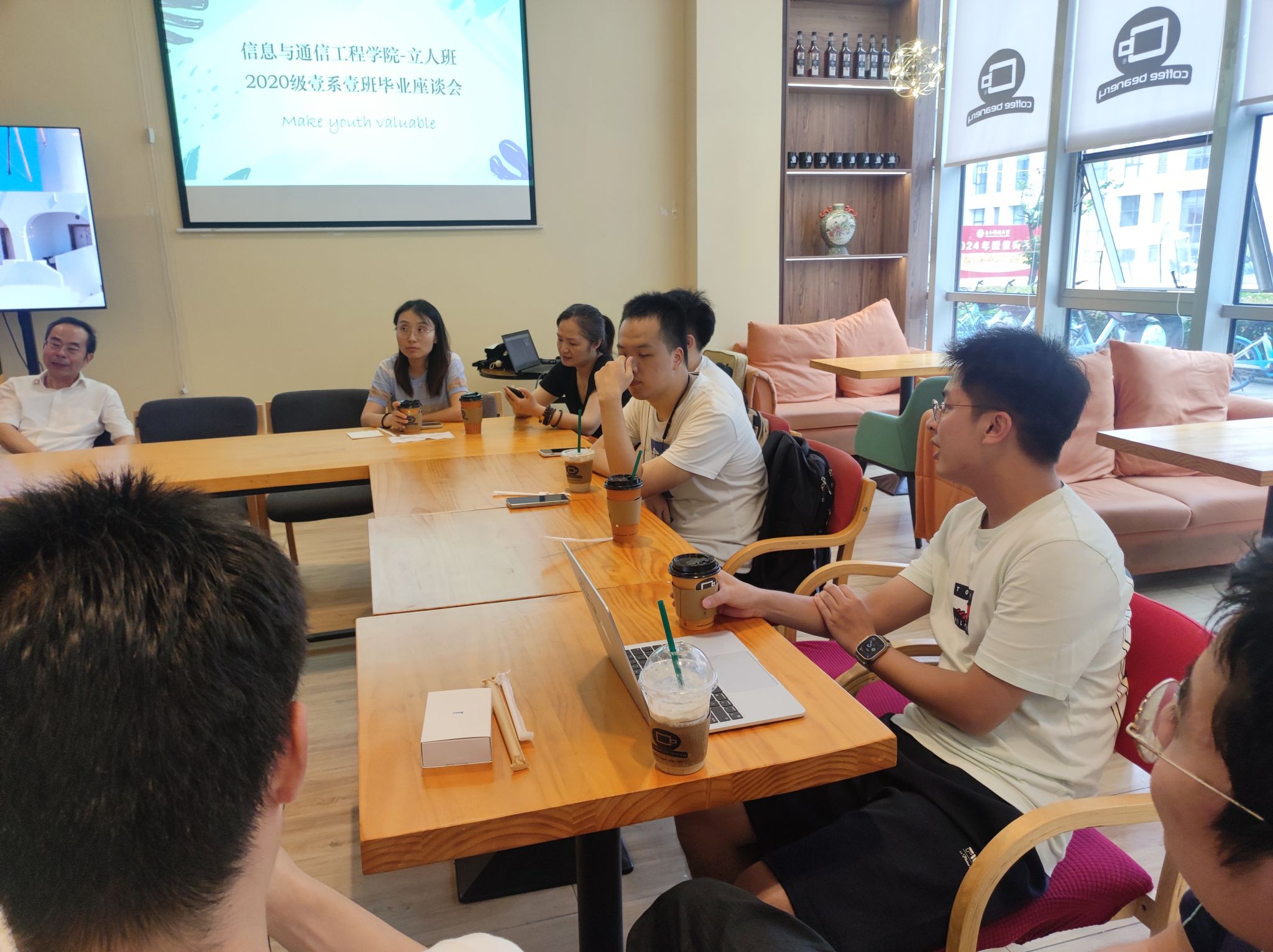 6月26日下午,2020级新葡的京集团35222vip立人班(壹系壹班)在宾诺咖啡举行了毕业座谈会。咖啡的馥郁萦绕空中,如几年间积累的友情与故事,丝丝入扣。这既是一场聚会,又是一幕幕青春回忆的回放,是对未来的无限憧憬与展望交织的珍贵片刻。