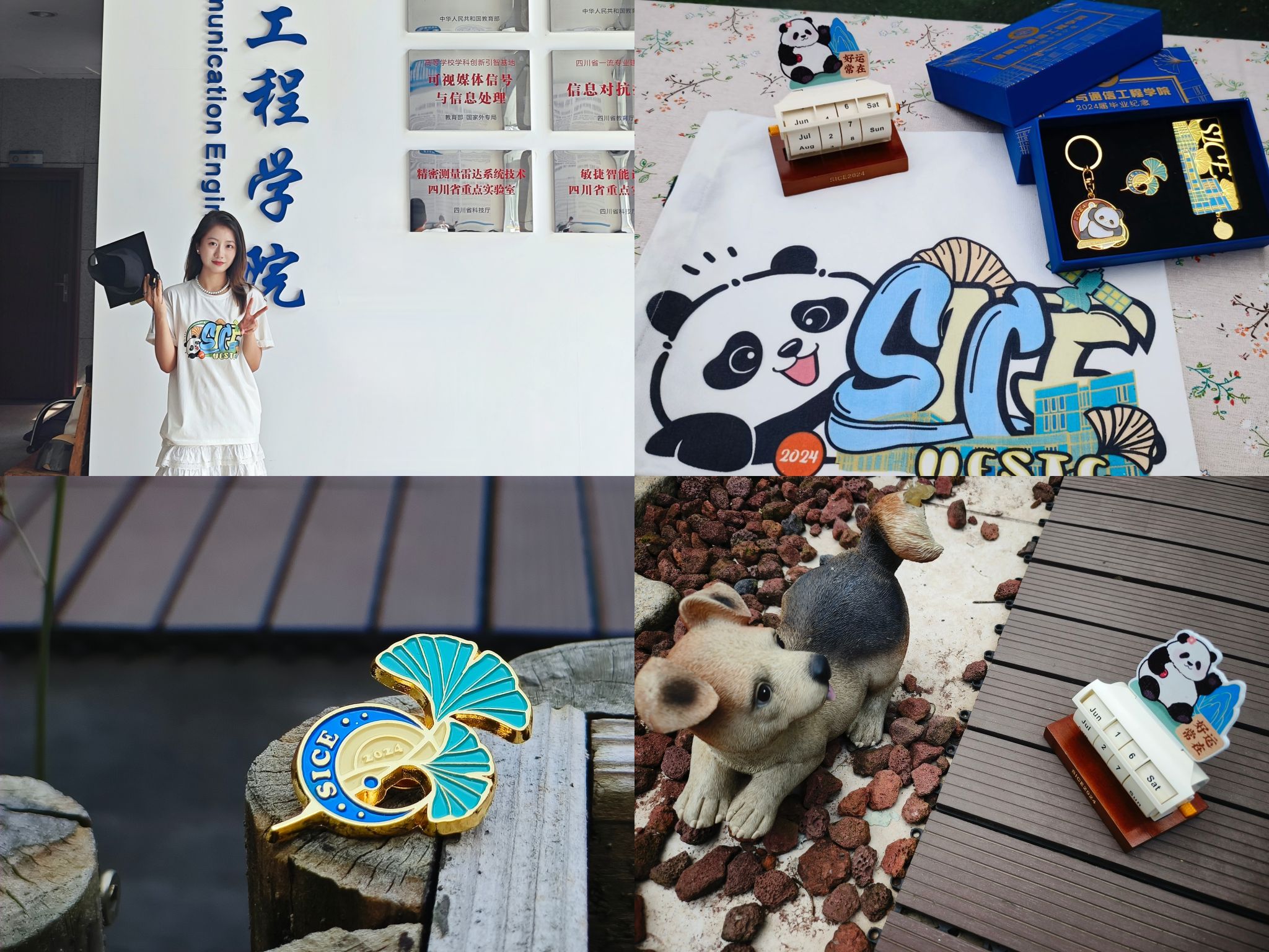 公司推出“衣系成电·信通记忆”毕业文化衫征集活动,最终2024届毕业生文化衫元素采取以公司英文简称“SICE”和憨态可掬的熊猫为主体、辅以创意元素的图案,并将其印制于帆布包等2024届毕业生毕业文创纪念品,同时以相关元素制作了钥匙扣、万年历、书签和徽章等毕业文创礼盒。