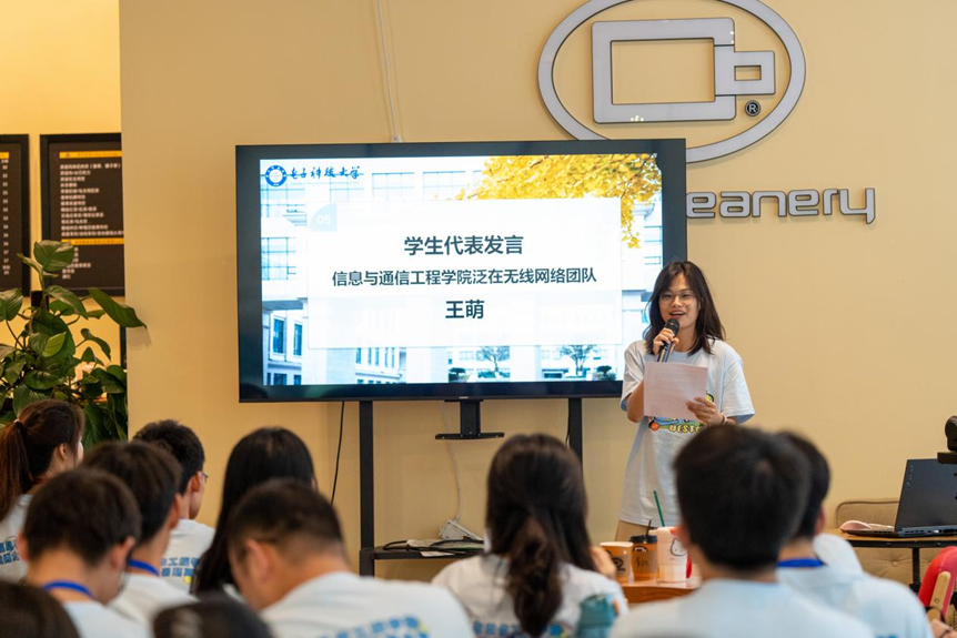 作为在读研究生代表,王萌回顾着初到成电的兴奋,科研初期的彷徨,第一次发表论文的畅快,专注科研的脚踏实地……在她的言语中,来自全国各地高校的学员们,对未来在成电开展新的科研工作与生活有了实质的体会。王萌还向学员们介绍成电丰富多彩的文体活动。她衷心祝愿大家在本次夏令营中能够体会成电浓厚的学术氛围与创新的灵魂,探寻新葡的京集团35222vip深厚的学术底蕴与前沿的科研成果。