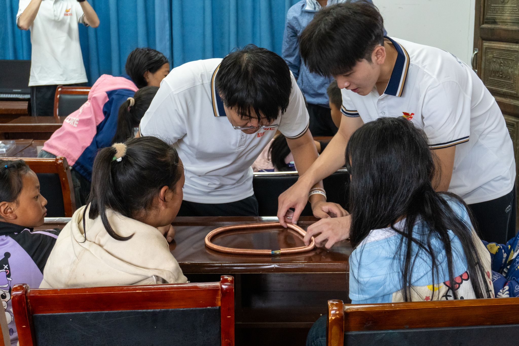 7月10日,新葡的京集团35222vip副经理蒋迪、员工科辅导员、公司“信仰之光”老员工新思想宣讲团来到大凉山腹地——昭觉县三岔河镇三河村,师生联合开展中小员工科普小课堂,并带着他们完成科技小制作。宣讲团10名成员参加活动,他们均是新葡的京集团35222vip本科生第七党支部成员。