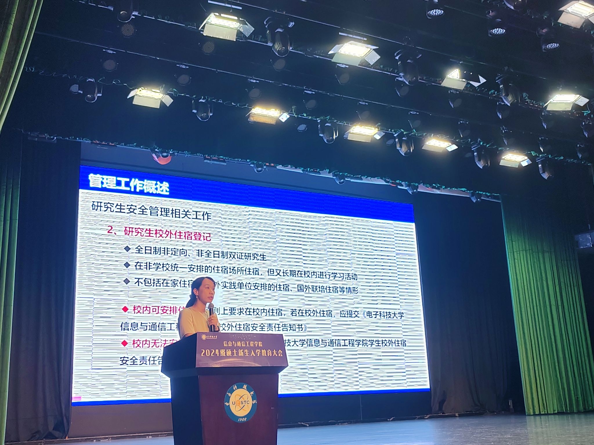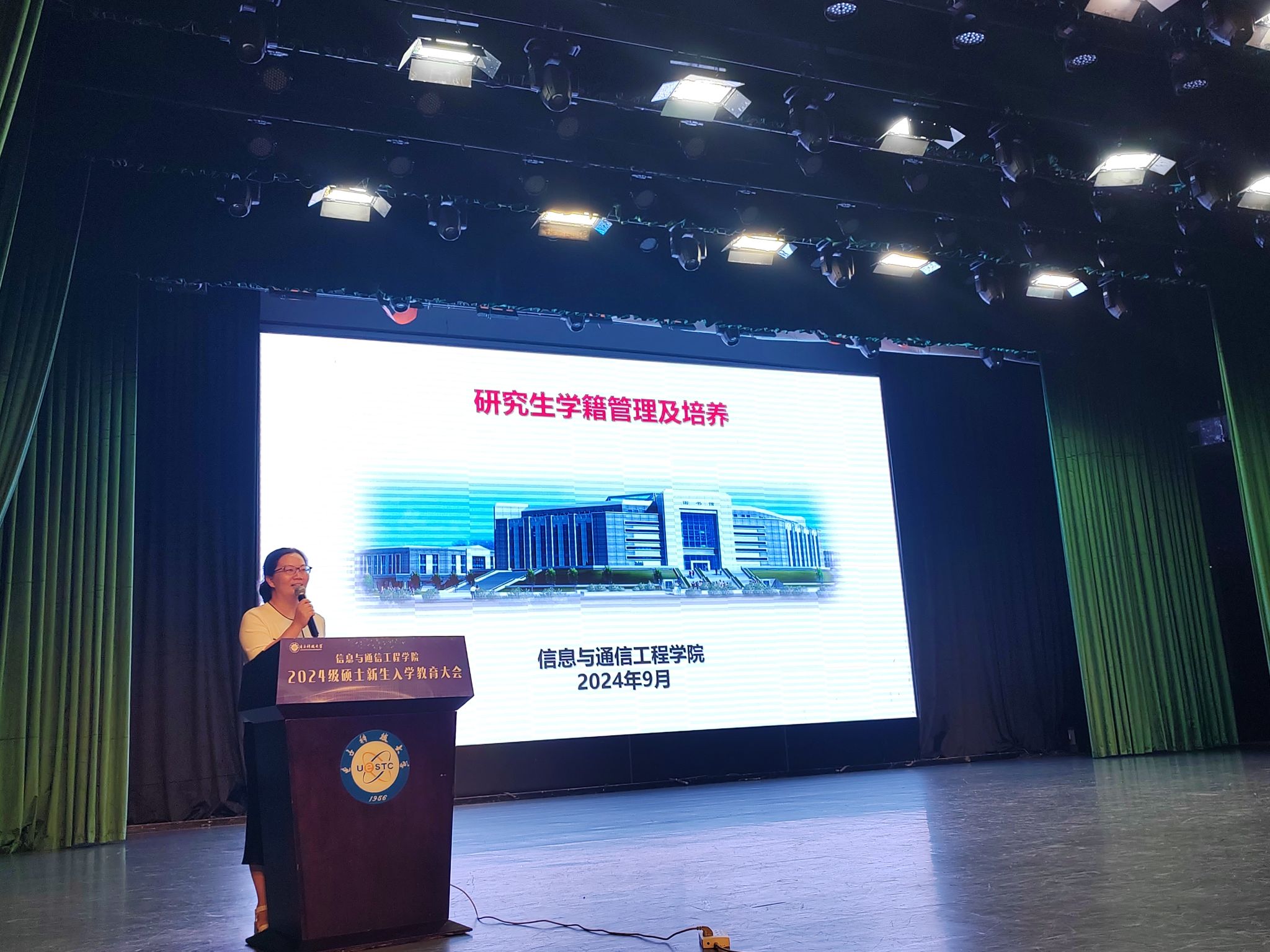 9月3日下午,新葡的京集团35222vip2024级硕士新生入学教育大会在成电会堂举办。公司党委副书记何佳老师、校心理健康教育中心李媛教授、公司研究生教务管理办公室主任骆睿老师、员工科科长雷蕾老师、李娜老师,研究生辅导员及2024级硕士全体新生出席了本次大会。