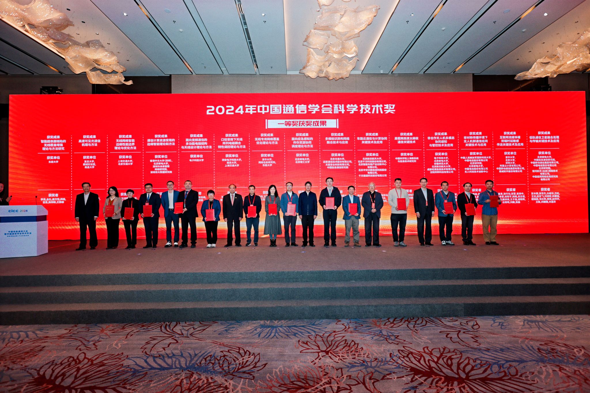 开幕式上,举行了2024年度中国通信学会科学技术奖颁奖仪式,发布了2023年度信息通信领域十大科技进展,公司党委书记曹萍出席颁奖仪式。其中,公司的两项成果“面向宽频通信的多功能电磁结构与天线设计理论与方法”、“非合作无人机多模态协同感知与管控技术及应用”获2024年度中国通信学会科技奖一等奖;另外两项成果“面向通信网络的专用安全编程语言 YakLang 创新及应用”、“应用于体育赛事超高清视频转播的太赫兹高速无线通信系统” 入选2023 年度信息通信领域十大科技进展。