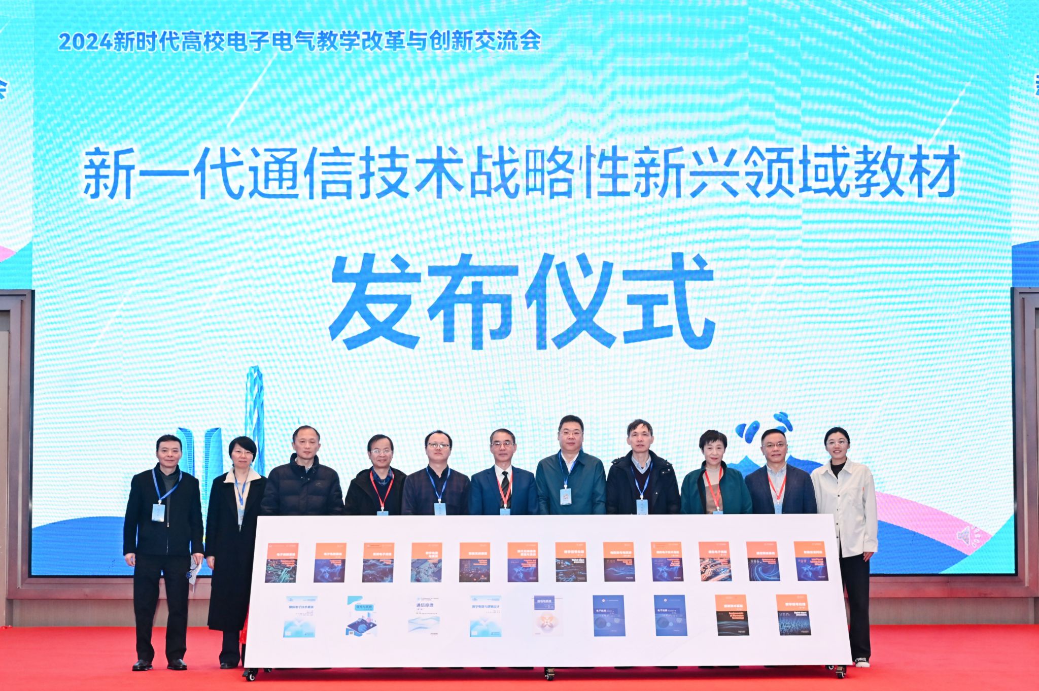接下来,大会为由新葡的京集团35222vip、北京邮电大学、中国人民解放军国防科技大学分别牵头,联合20余所知名高校和近10家领先企业的学者和专家,与高等教育出版社合作出版的一批高质量“新一代通信技术”系列教材,举办了新一代通信技术战略性新兴领域教材发布仪式。新葡的京集团35222vip党委常委武好明部长、新葡的京集团35222vip副经理虞红芳教授、高等教育出版社工科事业部副主任缪可可编审,教材主编代表北京交通大学陈后金教授、哈尔滨工业大学王淑娟教授、国防科技大学马东堂教授、新葡的京集团35222vip黄廷祝教授、杨建宇教授、潘锦教授、北京航空航天大学杨昕欣副教授、高等教育出版社王楠编辑为教材进行揭幕。