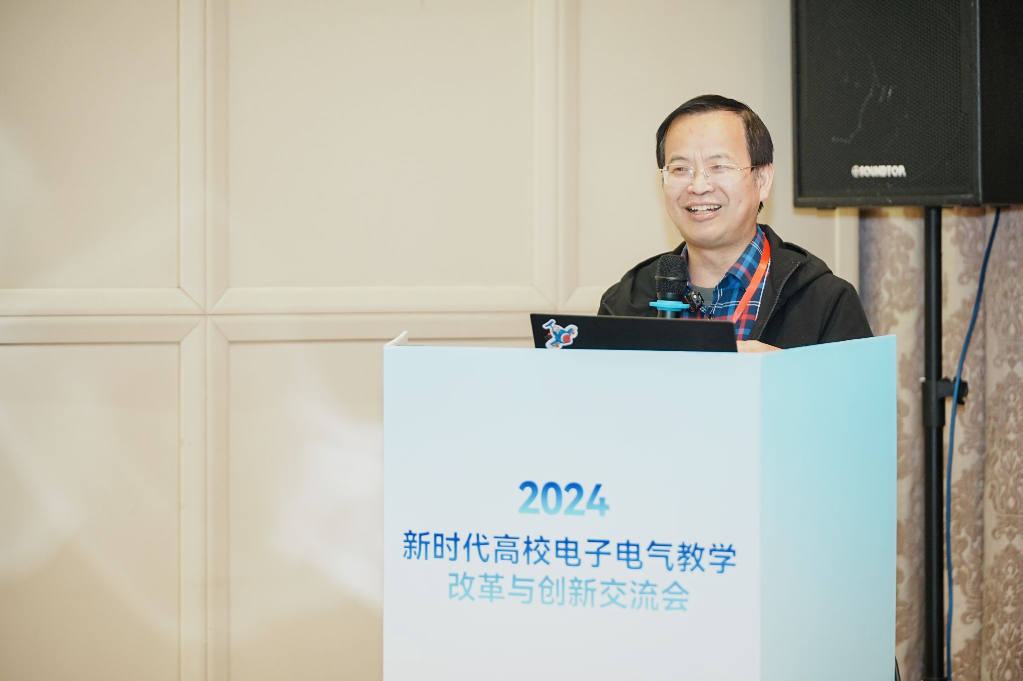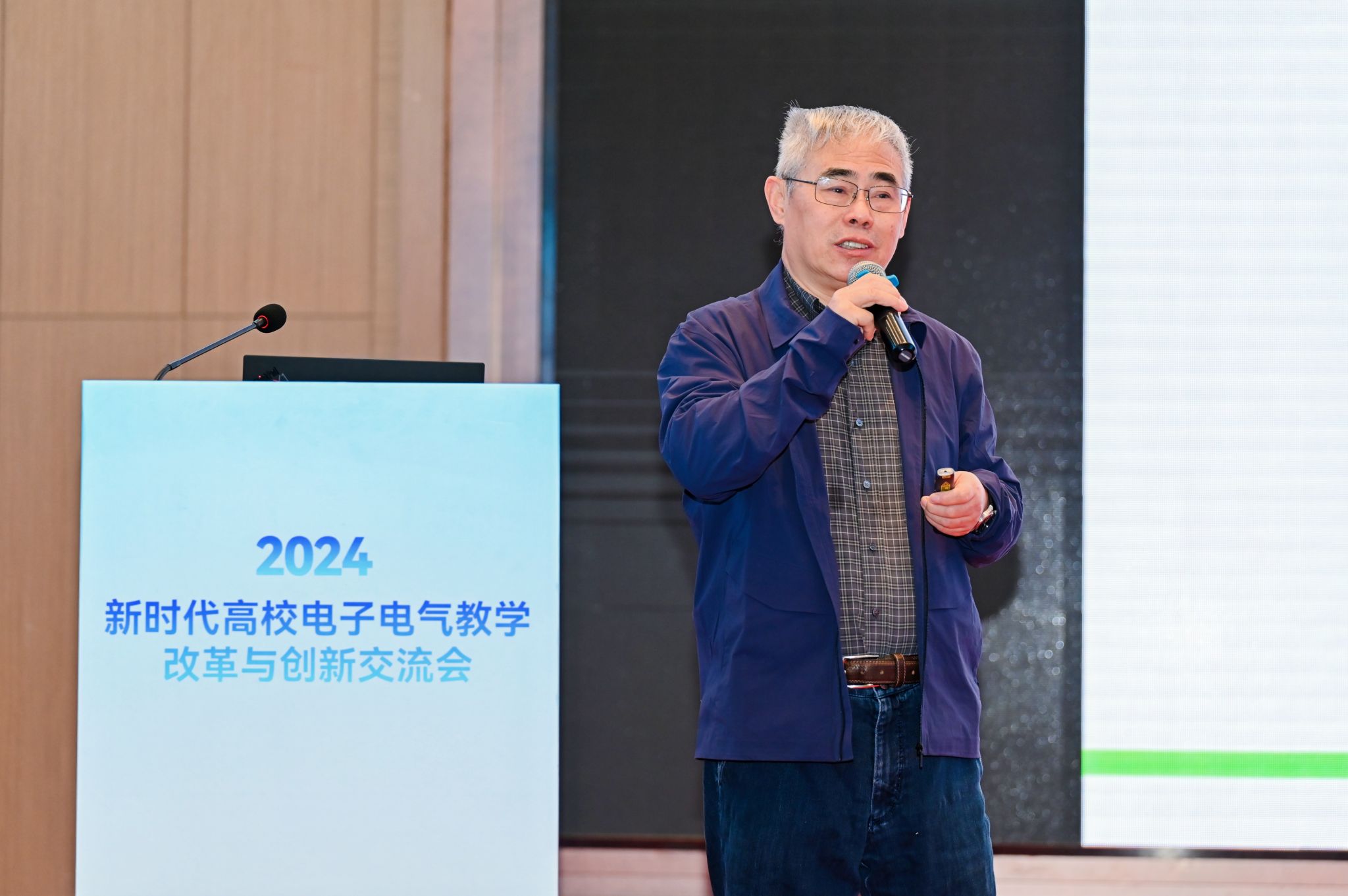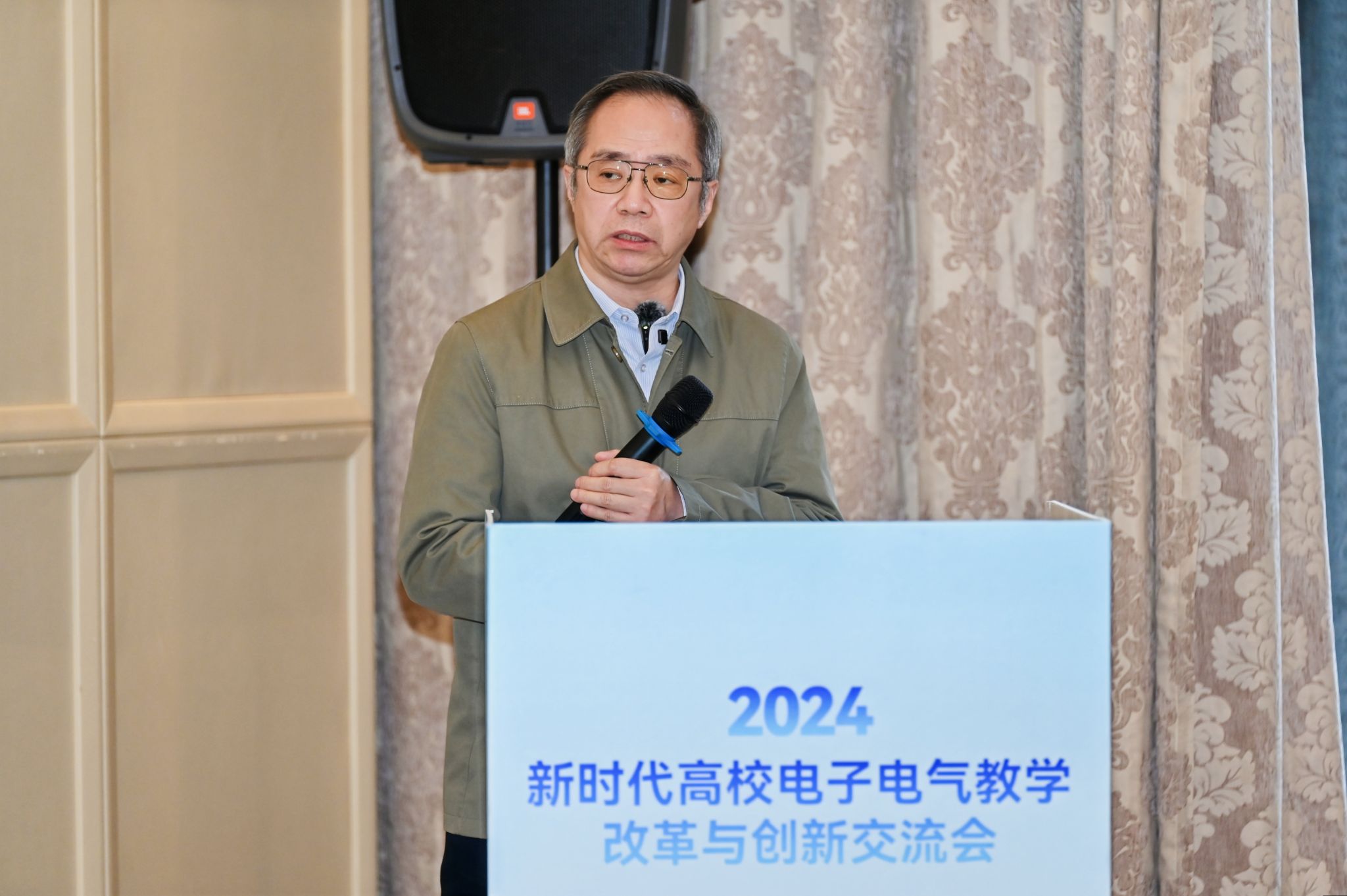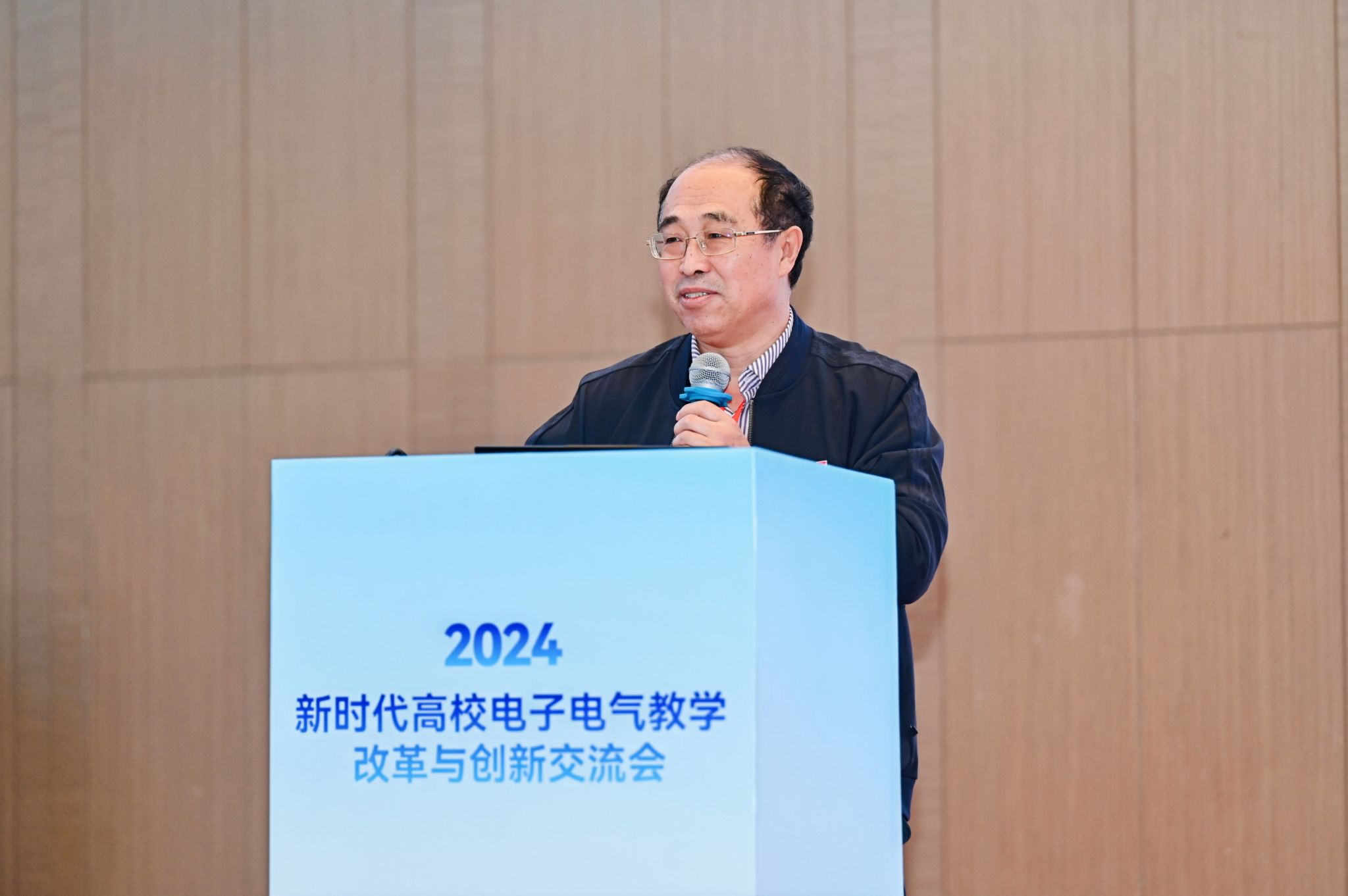 电工电子基础课程教学指导分委员会主任王志功在开幕式上发表致辞,他提到当前党和国家高度重视高等教育质量提升与创新改革,特别是教育数字化、人工智能赋能以及交叉学科、新兴团队建设。本次交流会围绕教育强国建设背景下的人才培养与课程教材建设展开,旨在推动信息技术与公司产品的深度融合,促进教学模式创新改革。该交流会已连续举办19届,为广大一线教师搭建了交流学习平台,对高等教育发展起到了极大促进作用。王志功希望与会者能集思广益、畅所欲言,为加快推进教育现代化、建设教育强国、办好人民满意的教育做出贡献,并预祝交流会圆满成功。