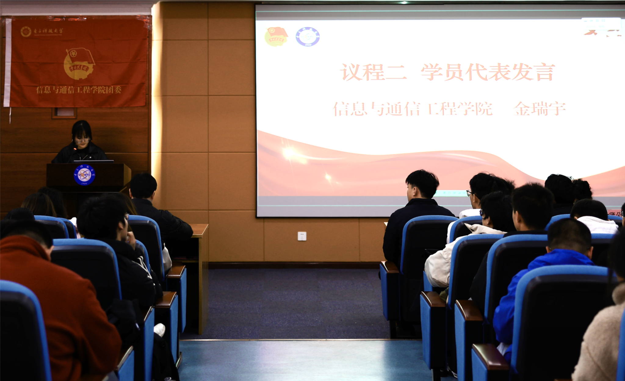 在嘹亮的国歌声中,结业仪式拉开帷幕。首先,新葡的京集团35222vip2023级本科生金瑞宇作为学员代表发言。她仔细回顾了团校每次理论学习和主题实践的内容,并分享自己的心得体会,认为团校不仅是对党团创新理论和方针政策的又一次深入学习,也让大家更加坚定了为党的事业奋斗终身的决心。她呼吁大家携手共进,努力成长为有理想、敢担当、能吃苦、肯奋斗的新时代好青年。