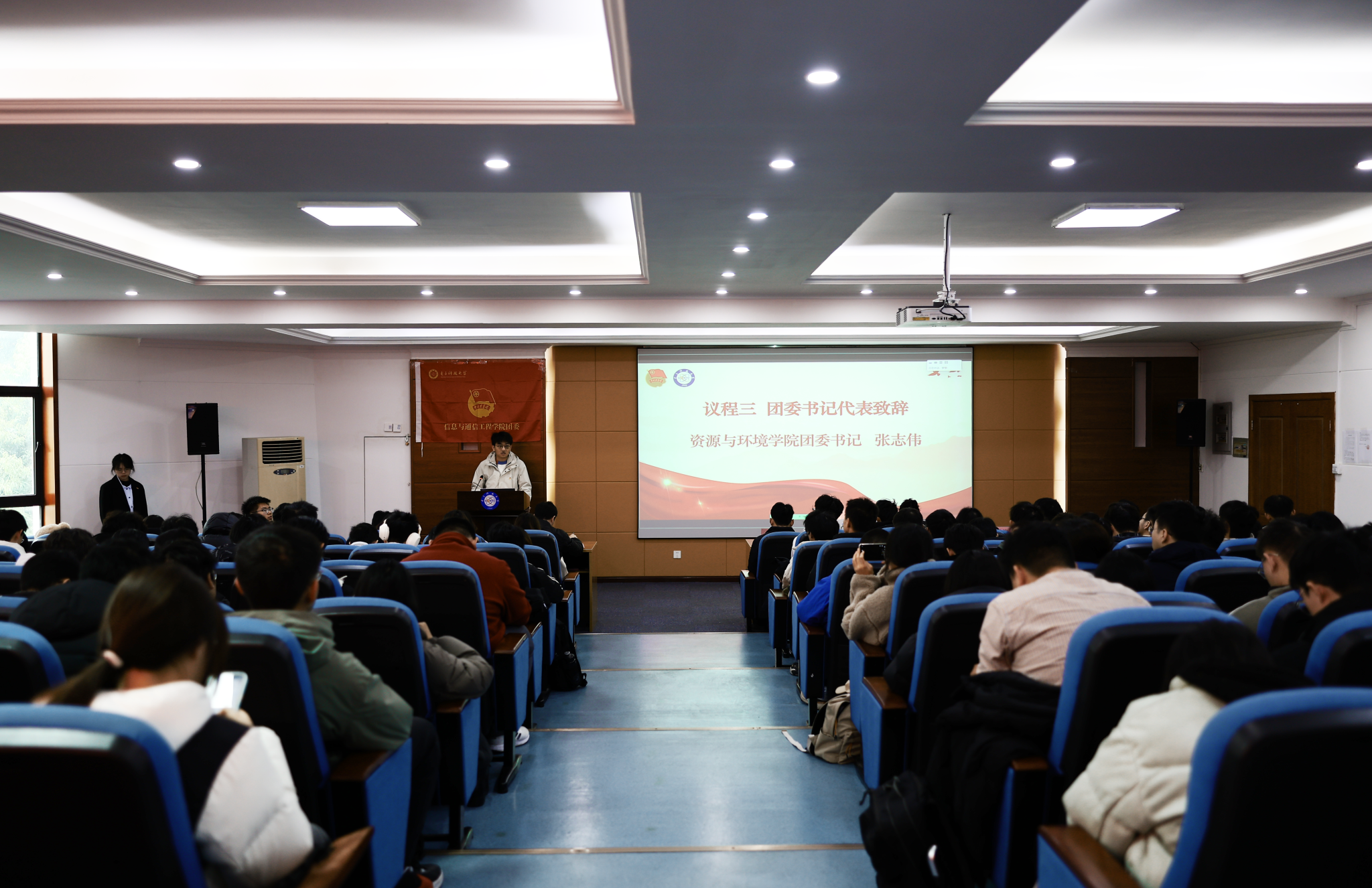 随后,资环公司团委书记张志伟老师致辞。他谈到“青年兴则国家兴,青年强则国家强。作为新时代的青年团员,我们既生逢其时,又重任在肩。共青团作为党的助手和后备军,始终与党同心、跟党奋斗。”他勉励大家要坚定不移听党话、跟党走,把个人的理想追求融入党和国家事业之中,努力学好专业知识,不断提升综合素质,立志为实现中华民族伟大复兴贡献青春力量。