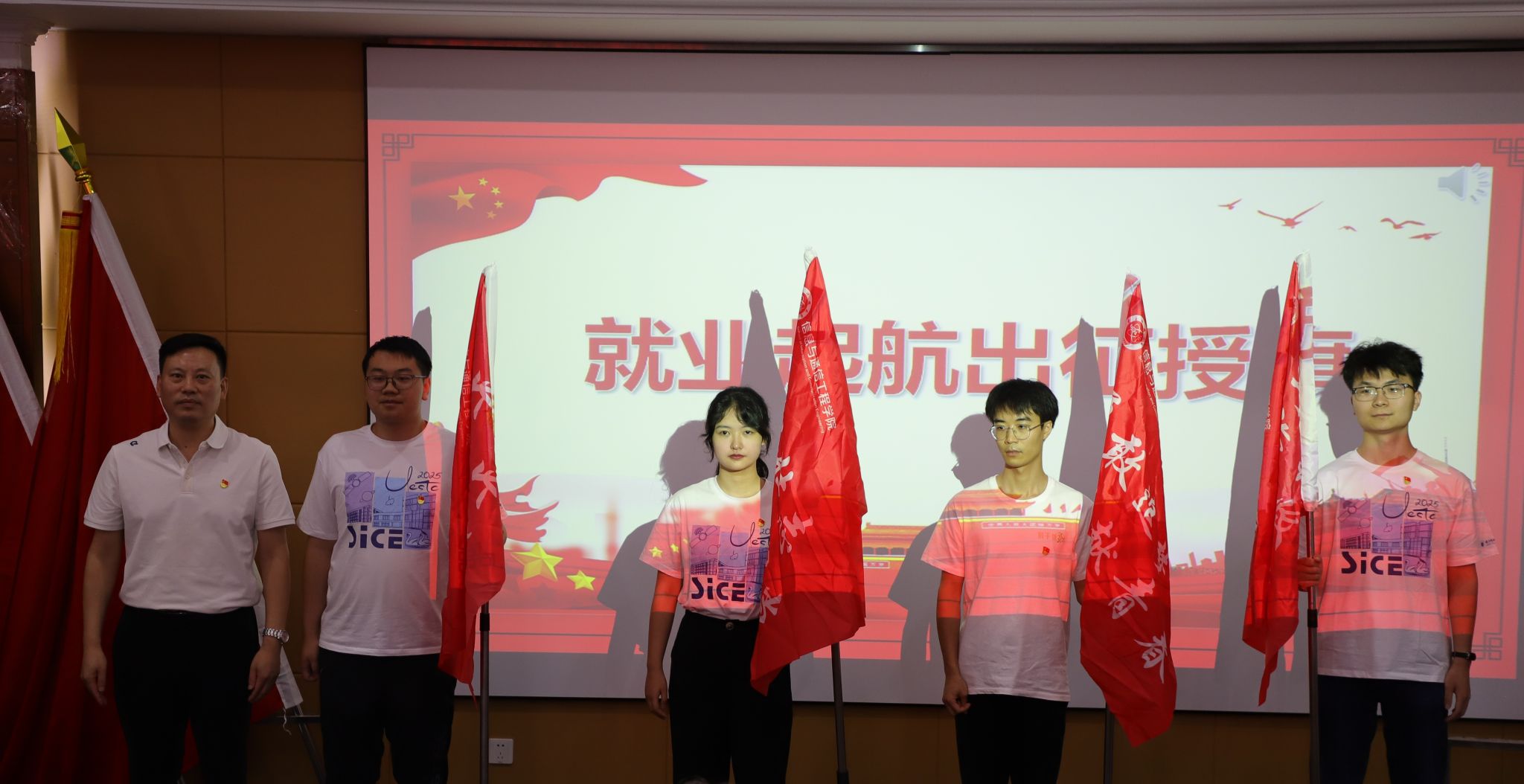 毕业生就业启航出征授旗仪式上,抗干扰全国重点实验室杨海光主任为赴基层、国家重点单位等工作的毕业生代表授旗,同学们依次分享了自己扎根基层、投身国家事业的青春志向和科技报国的坚定决心,同时表达了对公司培养的感激之情。