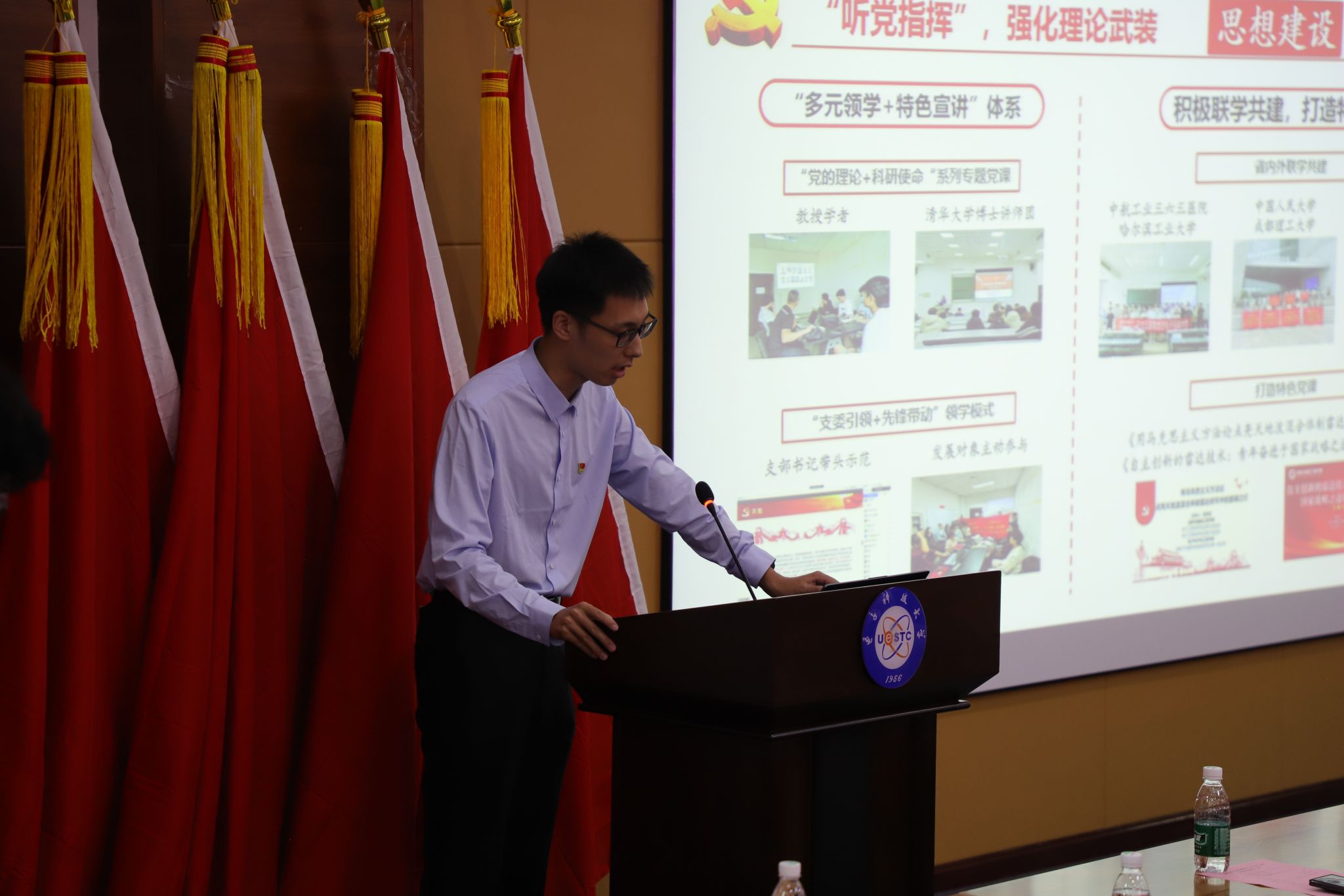 优秀支部风采展示环节,公司“研究生样板党支部”——电子工程系研究生第七党支部书记郭洪志代表支部进行展示。该支部以高质量党建驱动科技创新与人才培养,充分发挥信息与通信工程A+学科优势,主动服务国家重大战略需求,集中攻关,践行“听党指挥 科技报国”的责任使命。