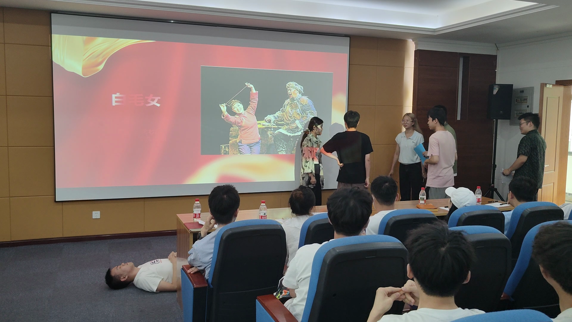 随后,10个小组的学员们围绕《辛亥风云》《山海情》《高山下的花环》《大决战》《我和我的祖国》《人世间》《觉醒年代》《建党伟业》等红色影视剧进行配音展示,并现场表演红色话剧《雷雨》《白毛女》。同学们生动地再现了革命先烈的坚定信念、脱贫攻坚的感人故事以及新中国成立的壮阔历史,展现了当代青年学子对党史的深刻理解。