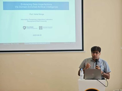 报告中,Monga教授分享了其领导的信息处理与算法实验室(iPAL)的最新研究成果,重点探讨了如何通过领域知识增强的AI方法应对深度学习中的数据缺陷问题。他指出,传统深度学习模型在面对有限、低分辨率或噪声数据时表现受限,而融入统计估计与先验知识的领域增强方法,可以有效提升模型的鲁棒性和泛化能力。