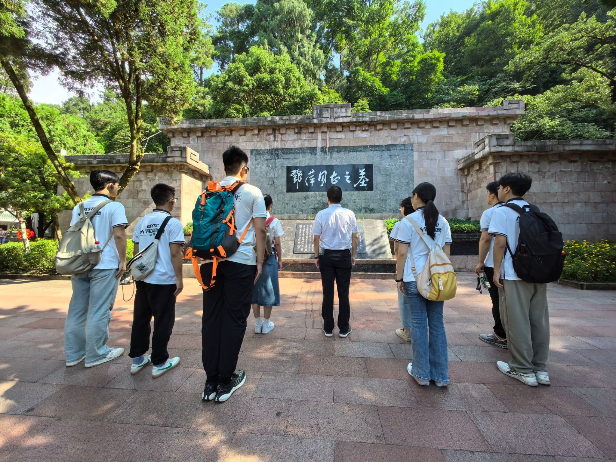 在庄严肃穆的红军烈士纪念碑前,师生整齐列队,向革命先烈敬献花篮,蒋迪教授代表师生党员上前整理挽联。师生党员向红军烈士纪念碑三鞠躬致敬,重温入党誓词,铿锵有力的誓言回荡在山间,表达着青年党员传承红色血脉、勇担时代使命的坚定决心。