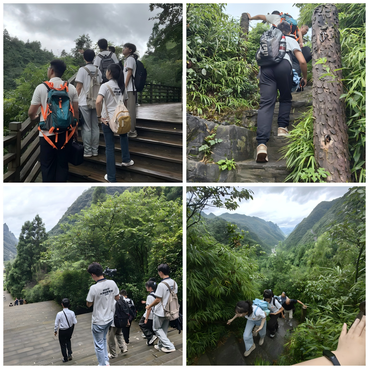 清晨,宣讲团师生伴随着淅沥小雨在娄山关开启重走长征路之旅。前往西风台途中,雨中的山路路况复杂,山间迷雾缭绕,能见度与气温均较低。队员们感叹着,“今日切身体会到当时红军先辈们用双脚丈量这一段崎岖山路的艰辛。”登上西风台时,浓雾被大风吹散,娄山关群山的巍峨与险峻呈现在眼前。宣讲团队员心潮澎湃,齐声喊出“雄关漫道真如铁,而今迈步从头越”的豪迈诗句,抒发对革命先辈的崇敬之情,彰显信通青年的壮志豪情。