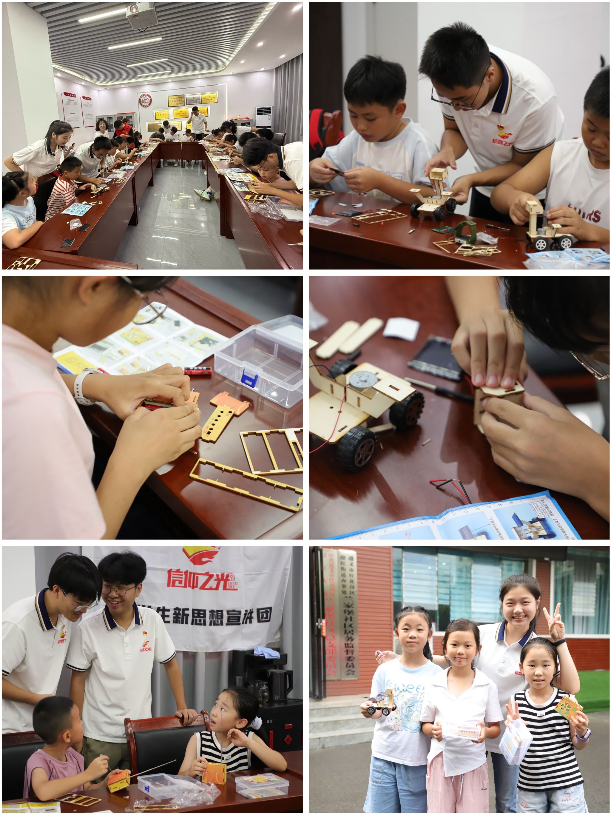 宣讲团成员、信通科协骨干张载杶从收音机的工作原理、太阳能如何转换为动能开展理论教学,随后宣讲团成员与兰家堡社区返乡老员工志愿者共同带领社区小朋友开展科普小手工制作,亲手组装收音机与月球探测小车,并在组装中继续开展原理讲解,加深孩子们对这些科技产品的认识,进一步点燃他们的好奇心。