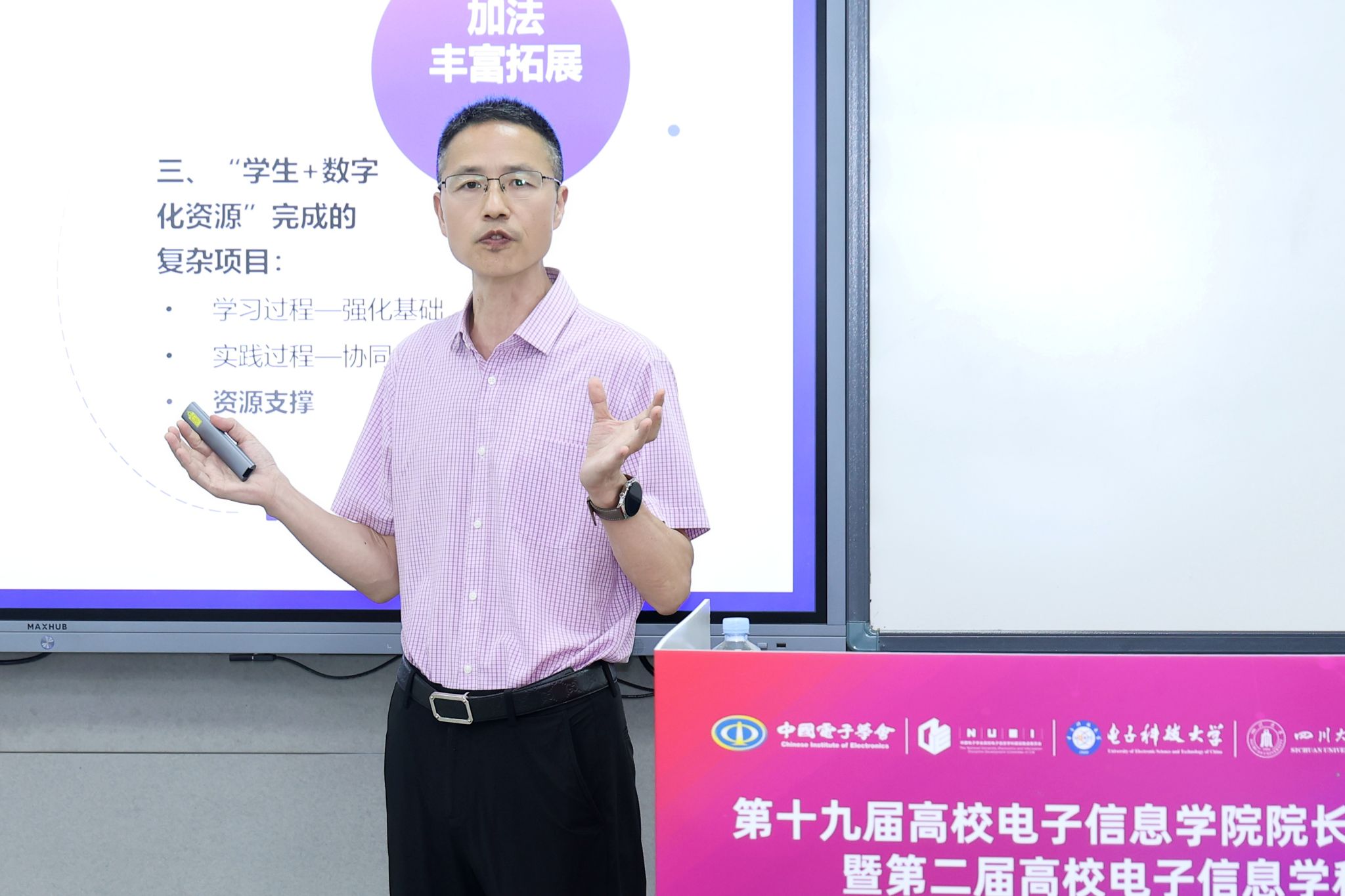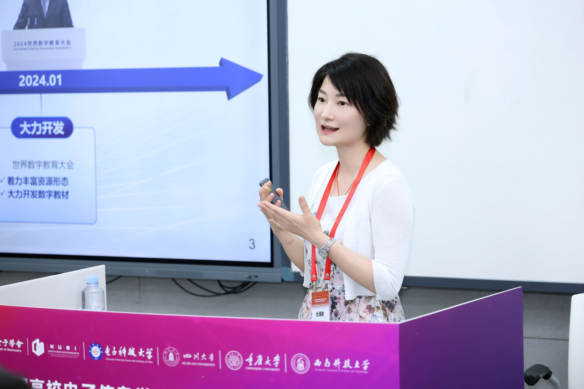 国防科技大学电子技术教学团队首席杜湘瑜教授带来了题为《学为中心、多元融合、数智赋能,打造电子技术系列数字教材》的报告。她指出,数字教材是智能化时代教材形态的进化与升级,将成为撬动核心教学环节革命性变化的杠杆之一。报告结合国防科技大学电子技术精品课程体系的建设成果,生动展示了“以员工为中心”的一体化电子电路系列数字教材建设思路、设计过程与显著特色。