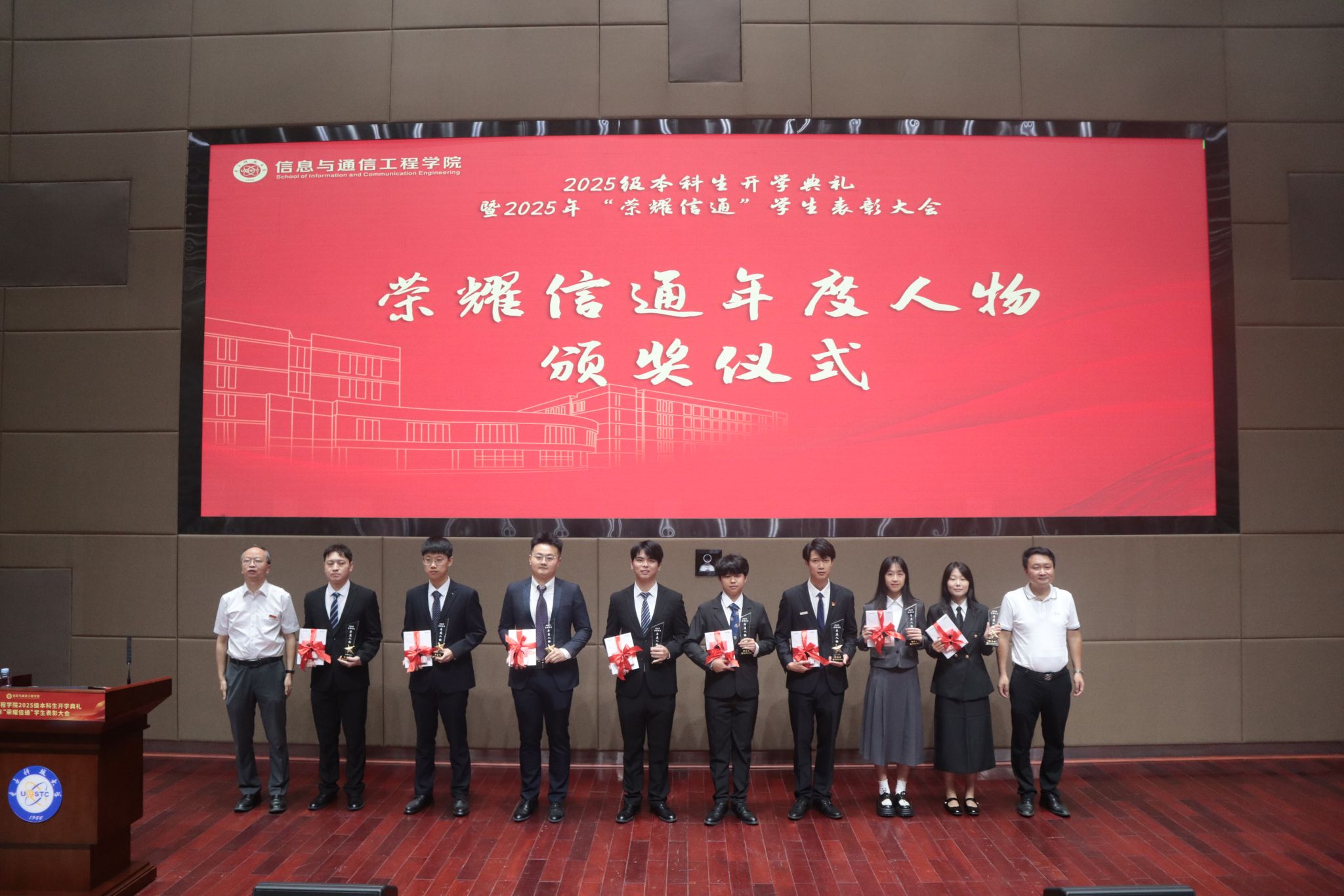 党委副书记何佳宣读了过去一学年中在学习科研、员工工作、创新创业、志愿服务等方面获得“荣耀信通”先进个人和集体的获奖名单,冷甦鹏书记与黄钰林经理共同为“2025荣耀信通年度人物”颁奖。