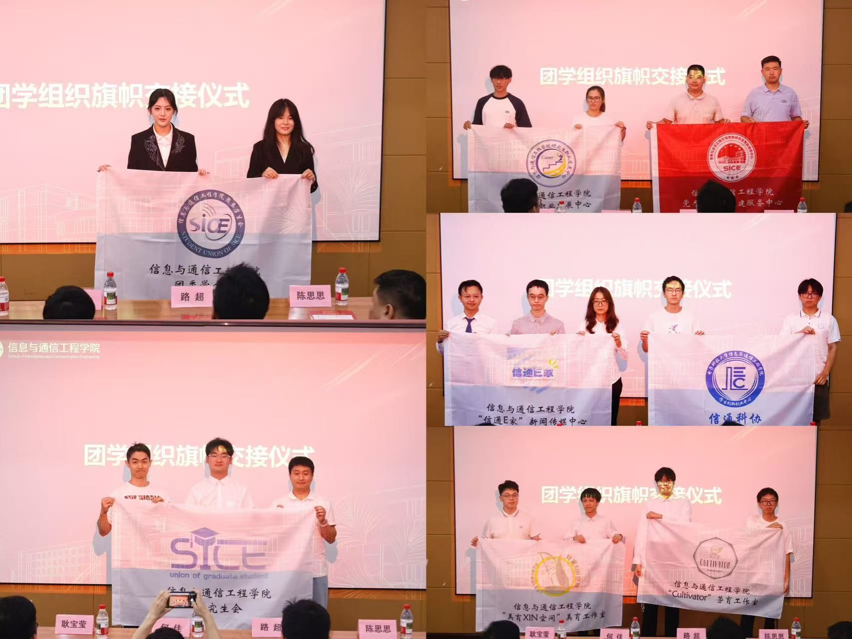 在旗帜交接环节,各组织上一届负责人将旗帜传递至新一届负责人手中,象征着责任与精神的传承。交接完成后,在研究生会中曾任负责人的团队博士后孙岩,结合自身经历鼓励同学们夯实专业基础,并在员工工作中学会协作与奉献。