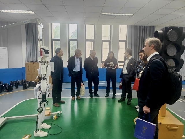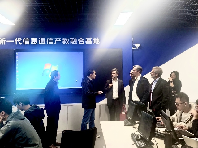 来访教授参观了中心新建设的Ku卫星通信上星测试实验设备、人形机器人交互与开发实验设备、物联网实景化应用开发实验设备。并与凌翔教授、阎波教授就相关实验教学设备交换了意见。