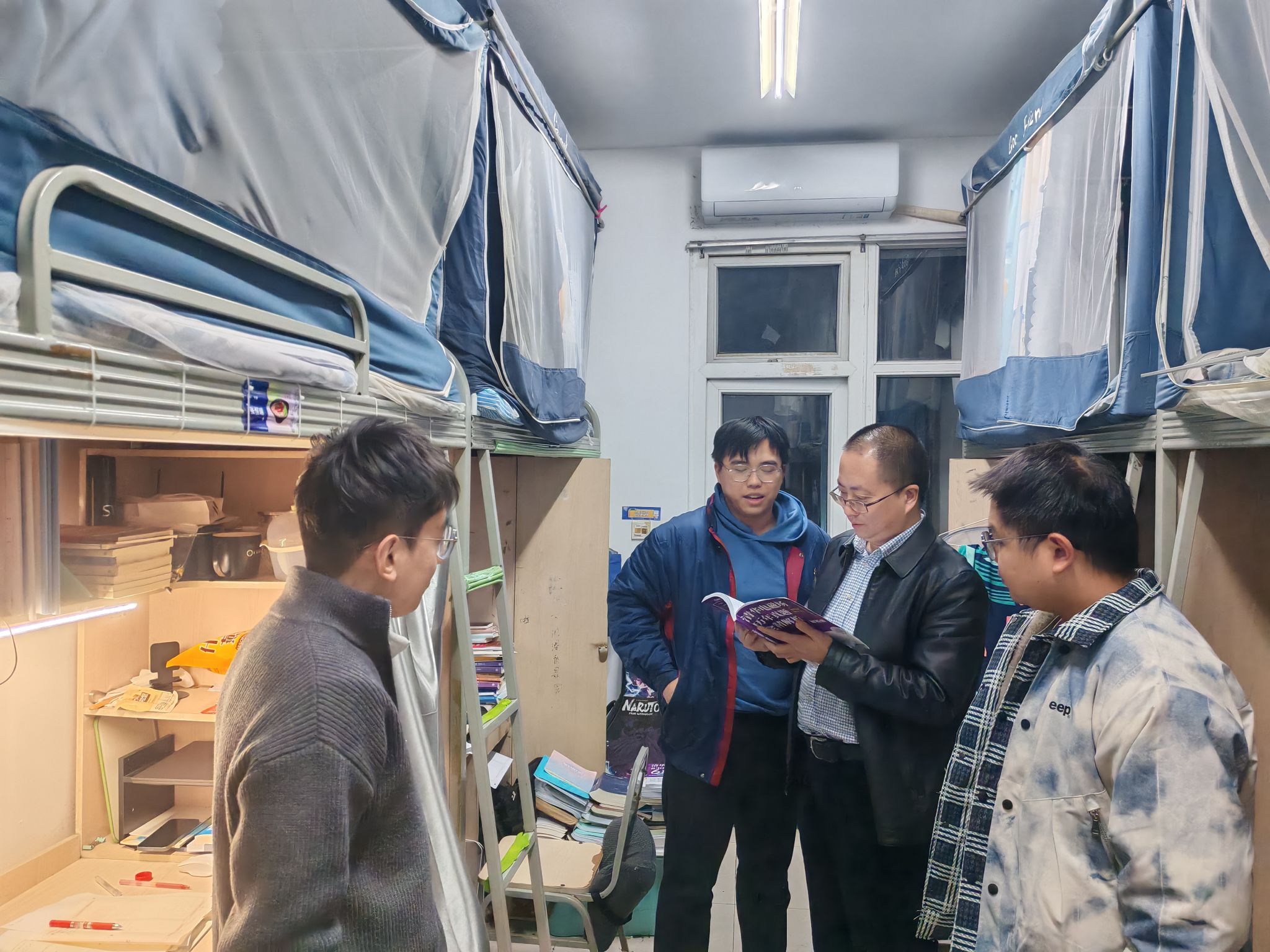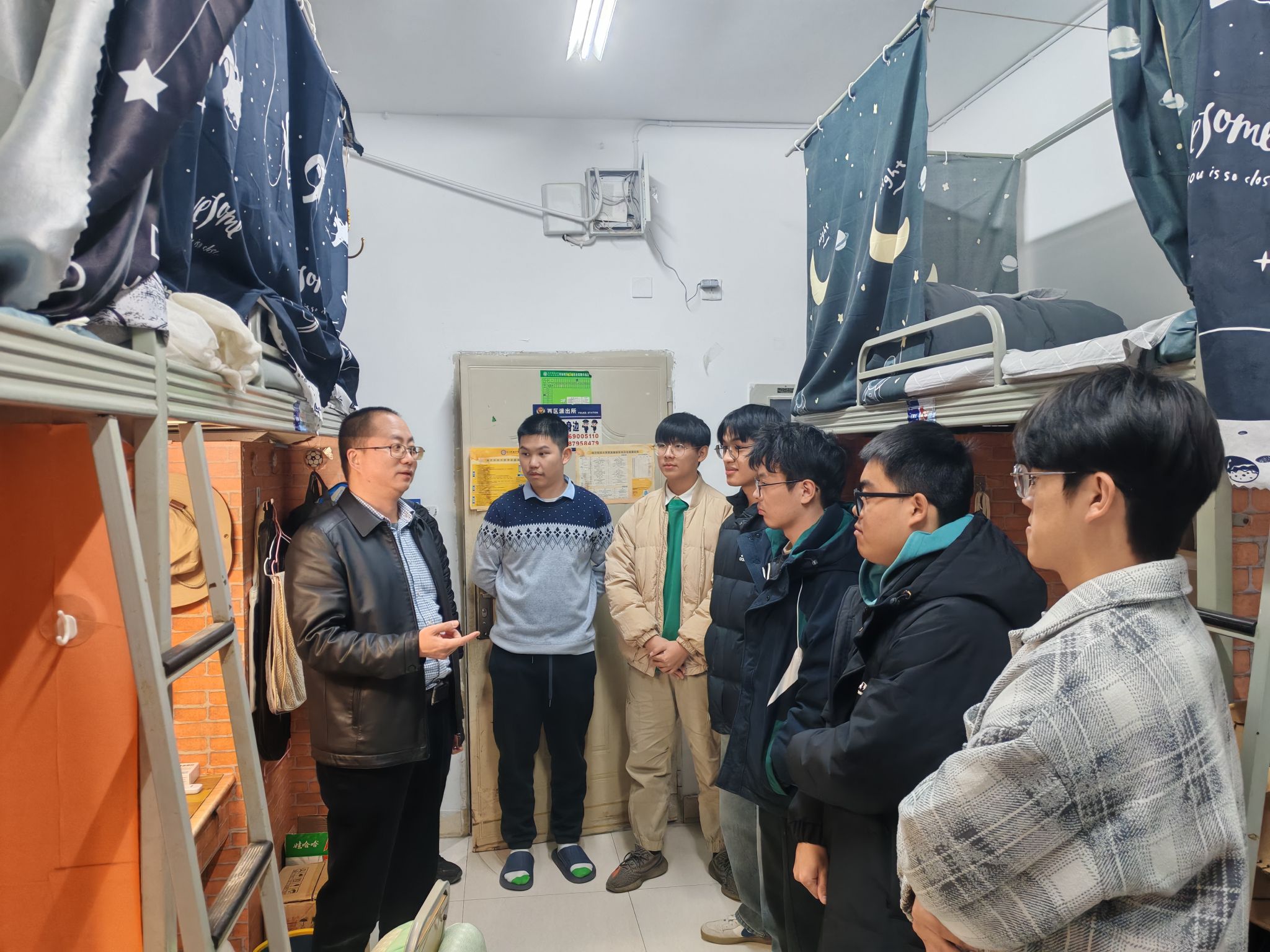 首先,蒋迪走进员工宿舍与同学们深入交流,细致询问大家的日常生活状态、课程学习难点及当前面临的发展困惑。从专业课学习压力到科研入门的迷茫,从考研备考的焦虑到就业方向的纠结,蒋迪认真听取每位同学的诉求并予以解答。