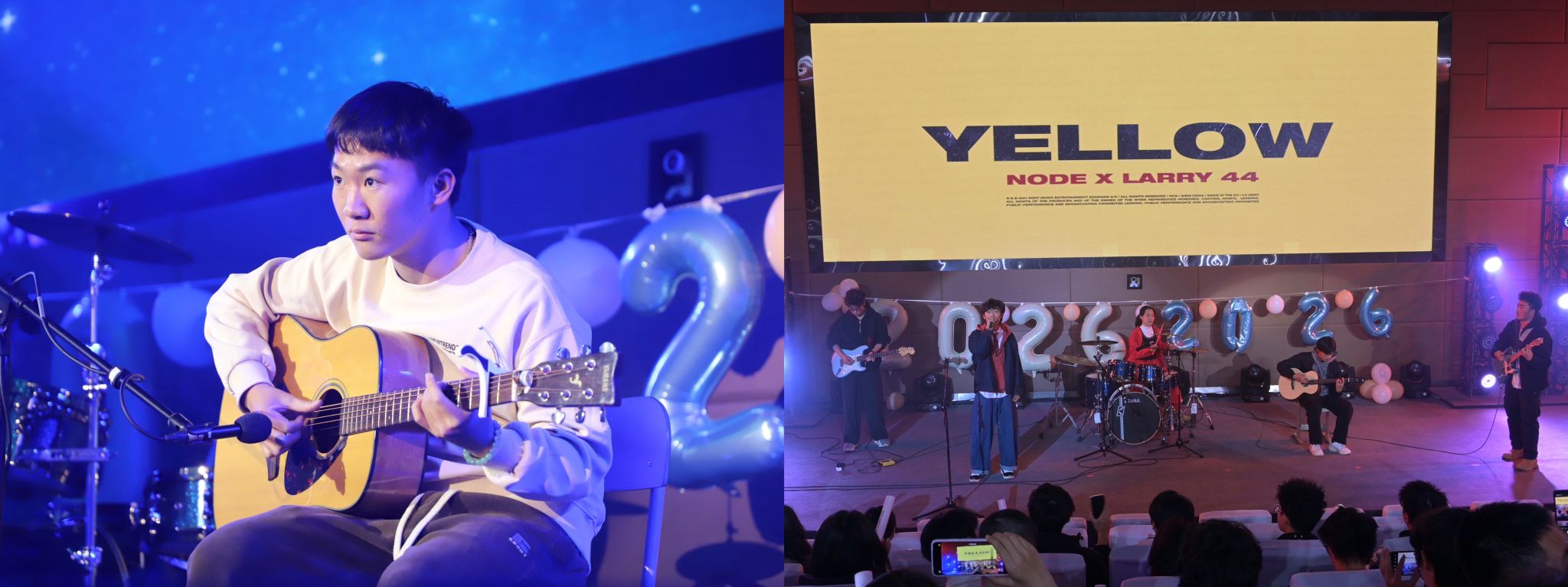 晚会在悠扬的乐曲中拉开序幕。开场节目《Like a Star》以吉他指弹呈现,《Yellow》则以乐队表演形式热情奏响,两首歌曲以不同风格点燃现场气氛,引来阵阵掌声。