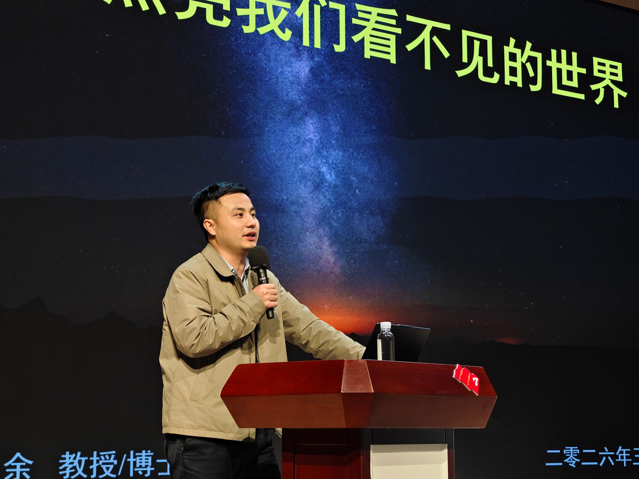 随后,他从电磁波谱讲起可见光、红外线、紫外线、电磁波的波长区别,通过生动鲜活的案例,引出红外成像、雷达成像技术的原理。他还以具体的科研经历为例,向同学们分享了所带研究生参与重大项目课题的感受和体会,激发同学们的科学对科学的热情,他鼓励同学们要提高动手能力,更要在团队中学会团结。