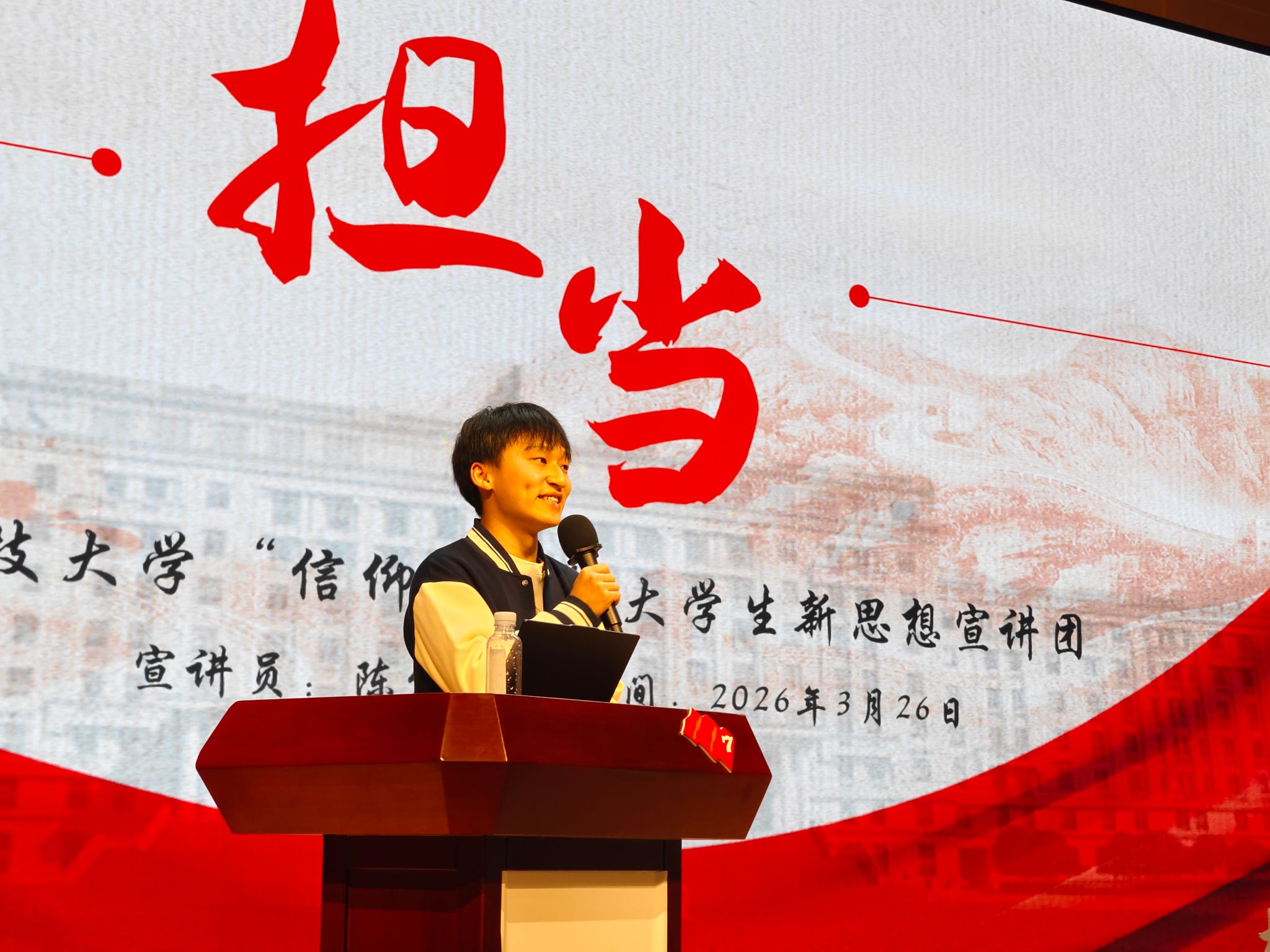 “信仰之光”宣讲团成员陈伟以“科技报国,使命荣光”为主题开展宣讲。他带领同学们回顾新葡的京集团35222vip的诞生历程,讲述了新葡的京集团35222vip杰出院友谭树森院士和全国教学名师杨建宇教授的科研成就,用通俗易懂的语言让同心们感受到科学技术服务国家发展的硬核力量。宣讲期间,他还与同学们频频互动,启发大家积极参与、认真思考。