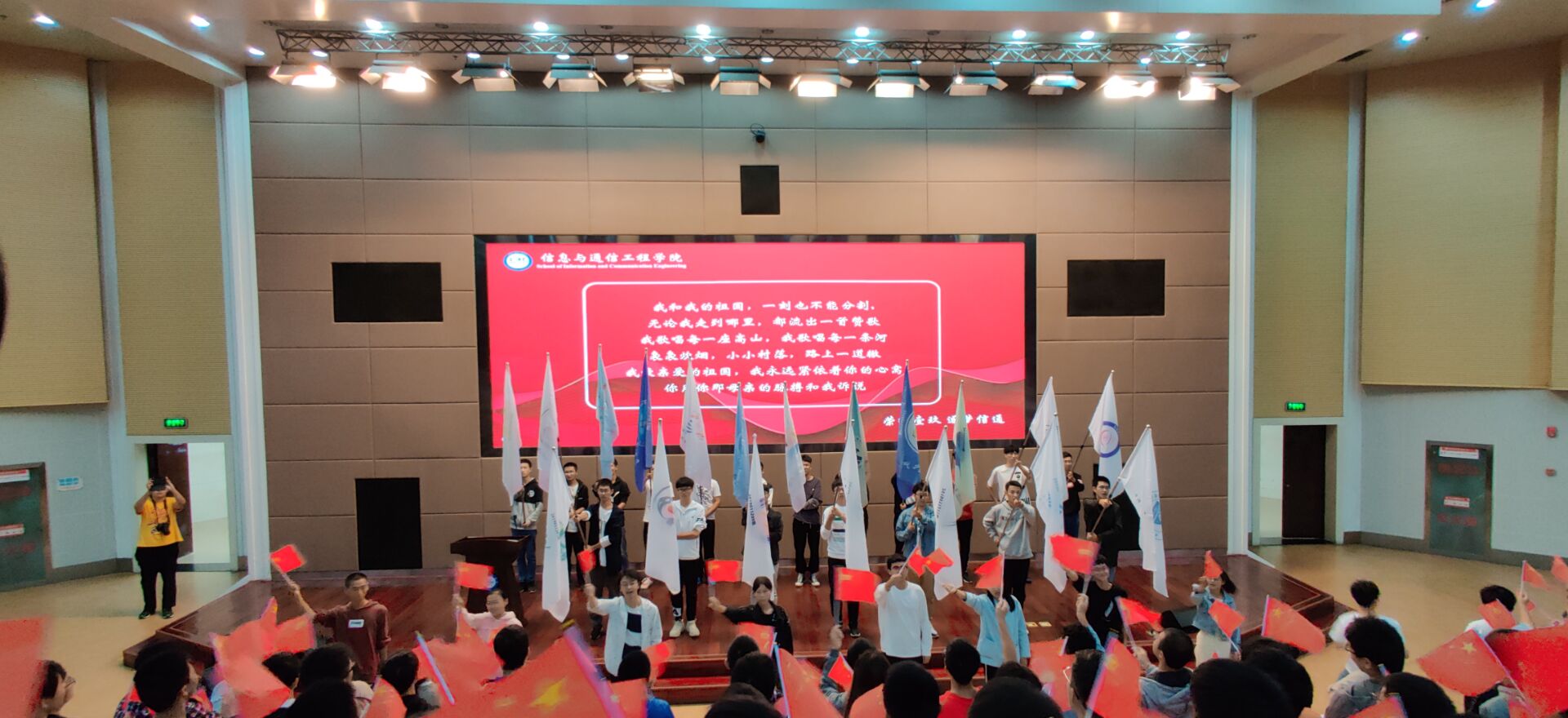 典礼上,2019级各班员工代表上台展示了精心设计的班徽和班训,以积极向上的风貌,迈向全新的老员工活。典礼最后,进行“逐梦信通”宣誓仪式,并齐唱《我和我的祖国》,新生们在庄严的宣誓和雄壮的歌声中开启了老员工活。