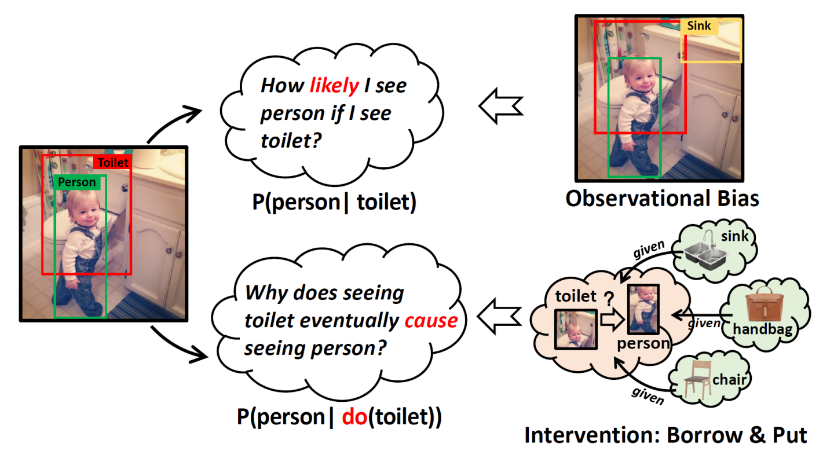 论文《Visual Commonsense R-CNN》针对现有的 Vision & Language 任务所用Up-Down特征存在的:bias较大、缺少构建物体与物体之间关系等问题,从因果推断(Causal Inference)的角度出发,利用Judea Pearl等人在2009年提出的“Do”算子和后门调整算法,结合现有的目标检测框架对现实场景中的物体进行干预(Intervention)。其本质可以简单的理解为“Borrow & Put”: