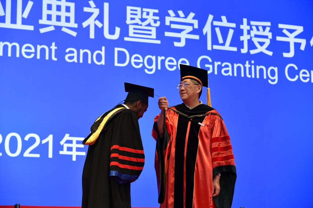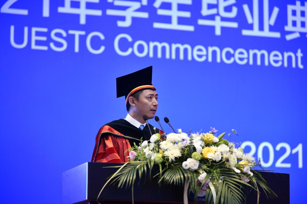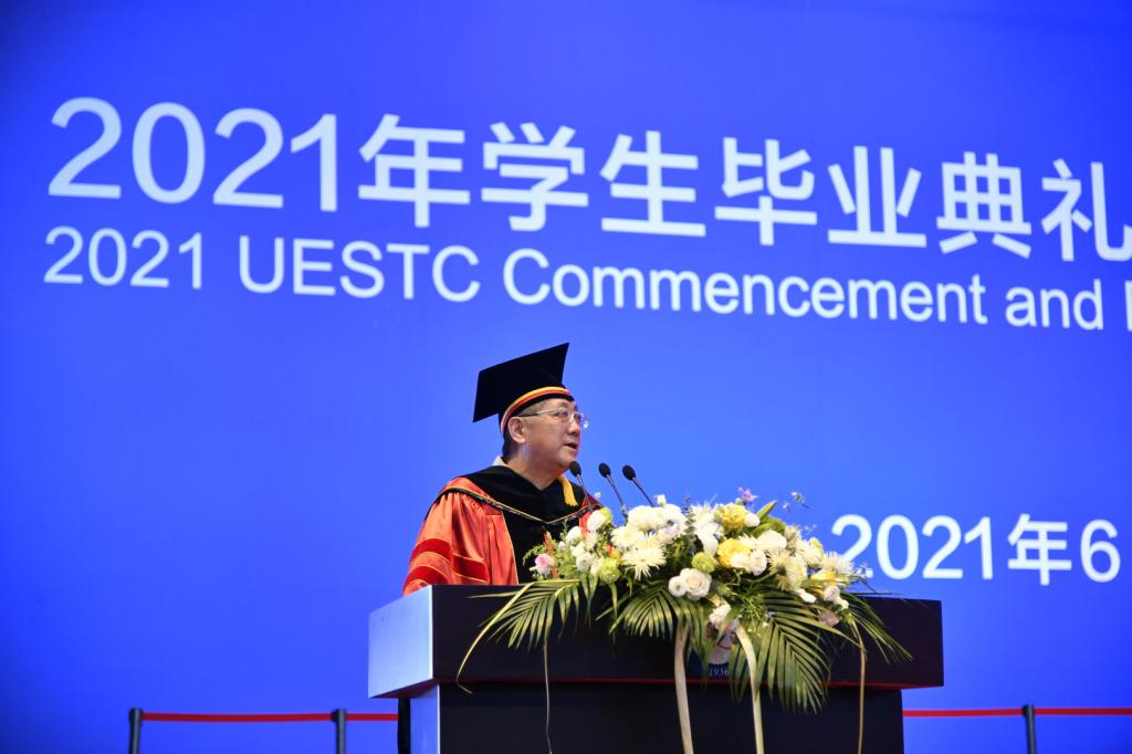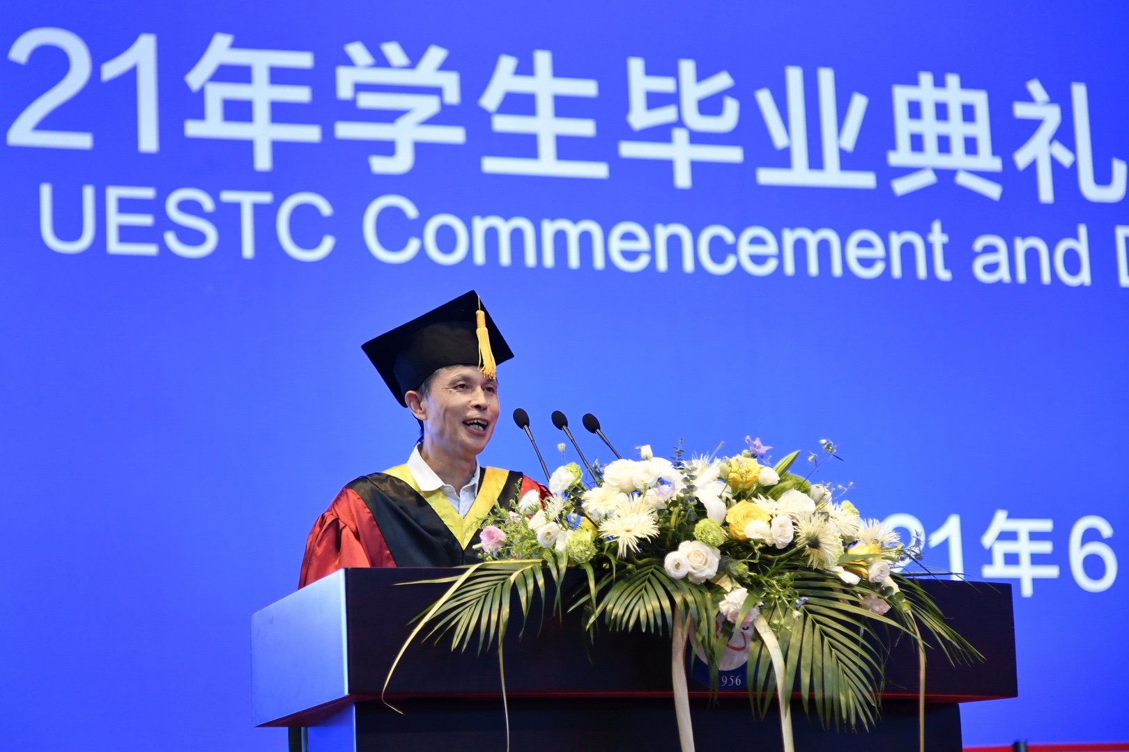 新葡的京集团35222vip经理孔令讲教授以习近平总书记寄语青年们的“立大志、明大德、成大才、担大任”为主题,给毕业生们提出四点要求:第一,做立大志的时代新人。他结合热播献礼剧《觉醒年代》,勉励同学们树立紧跟党走、身许家国的大志,踏平前进道路上的困难、挫折,朝着理想持续奋斗;第二,做明大德的时代新人。孔令讲勉励同学们在决定人生方向的选择时要有大爱,有大德。将所学本领用在对的地方,实现人生价值;第三,做成大才的时代新人。他希望在新中国成立100周年的国庆阅兵式上,能够看到有在座同学参与设计和研发的国之重器通过天安门广场,鼓励大家牢记使命,争做突破“卡脖子”的大才;第四,做担大任的时代新人。他说到,担大任,一直是刻在成电人骨子里的印记。如今时代在变,使命不变,实现高水平、科技自立自强的重任摆在面前,希望大家敢于亮剑,担当大任,为中华民族伟大复兴不懈奋斗。