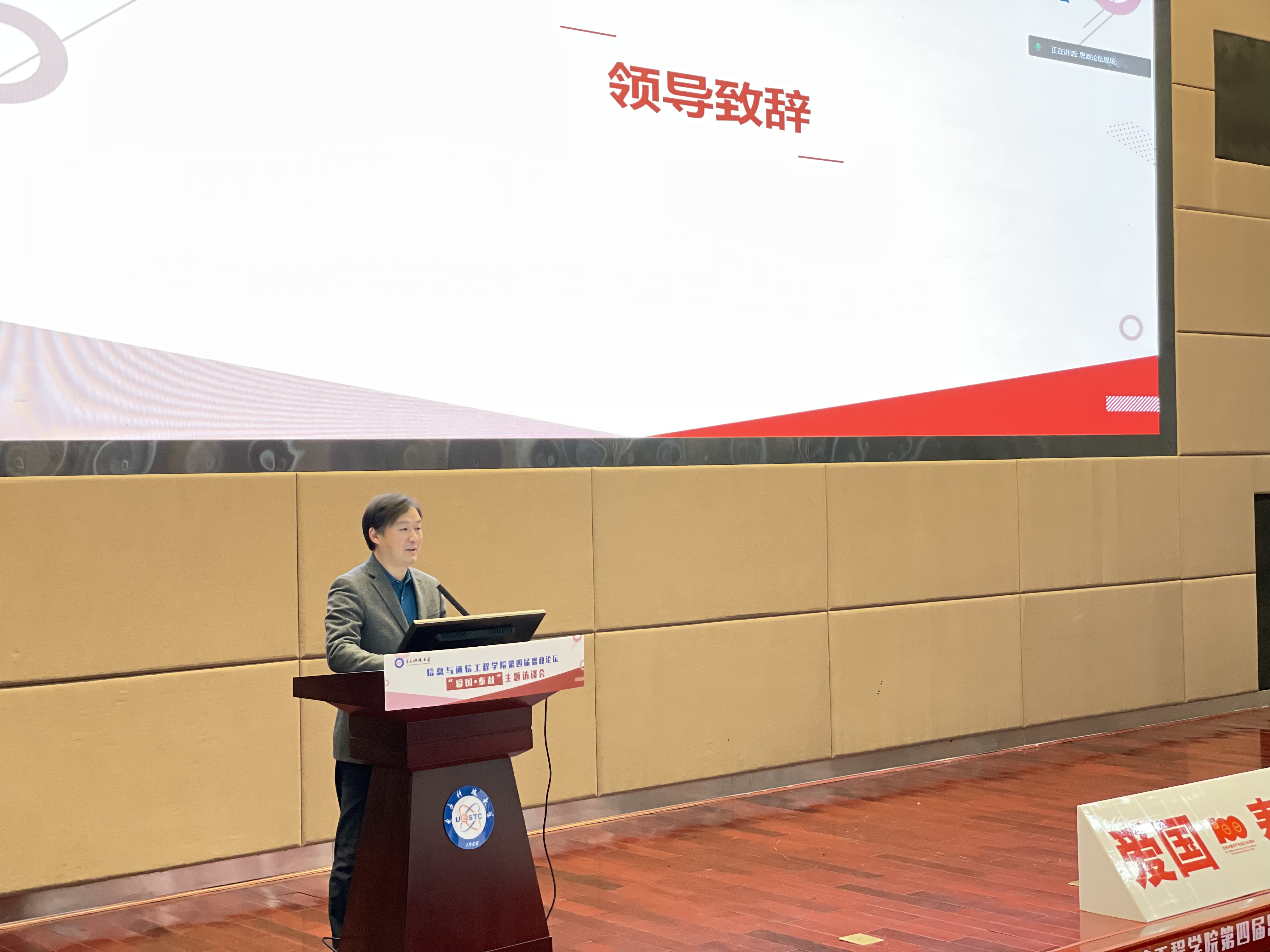 钱云光在致辞中讲到,新葡的京集团35222vip自建校以来,“为党分忧、为国担责”的政治底色与生俱来,为我国国防建设培养了一大批杰出人才。对于高校教育工作者来说,如何立足新时代,将爱国主义教育有机融入到员工思想政治教育中,是需要不断思考和实践的重要工作。同时寄语同学们要传承成电红色基因,发扬“爱国奉献、科技报国”的学科文化精神,践行“请党放心、强国有我”的青春誓言,为祖国的现代化建设贡献自己的力量。