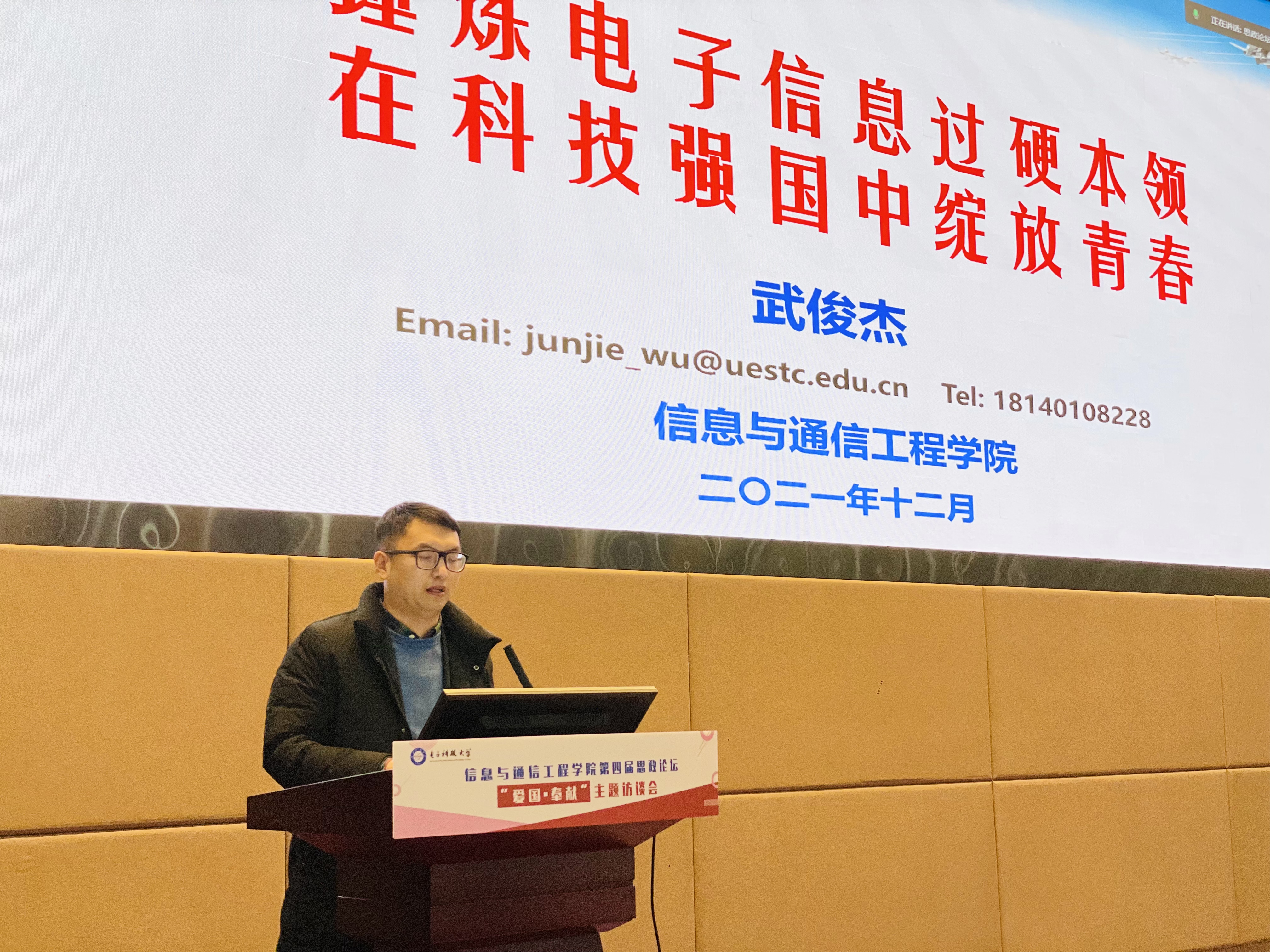 武俊杰带来“锤炼电子信息过硬本领 在科技强国中绽放青春”主题分享,从科研的角度详细介绍雷达的发展历程、基本任务、重要作用,以及不同平台的雷达和各领域雷达的具体应用。他说,新一代老员工要以“舍我其谁”的青年品格,锤炼真才实干;以“国之大者”的使命担当,服务科技强国。