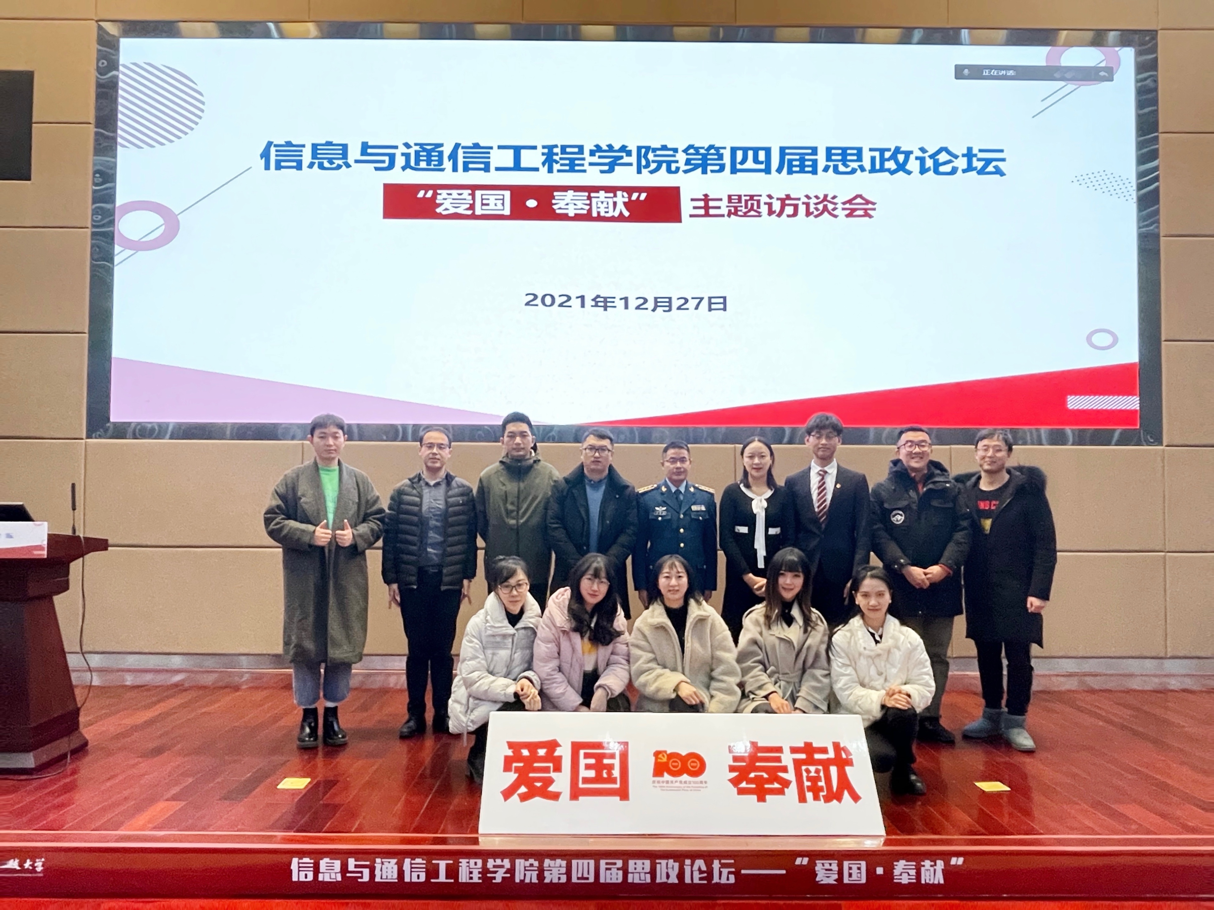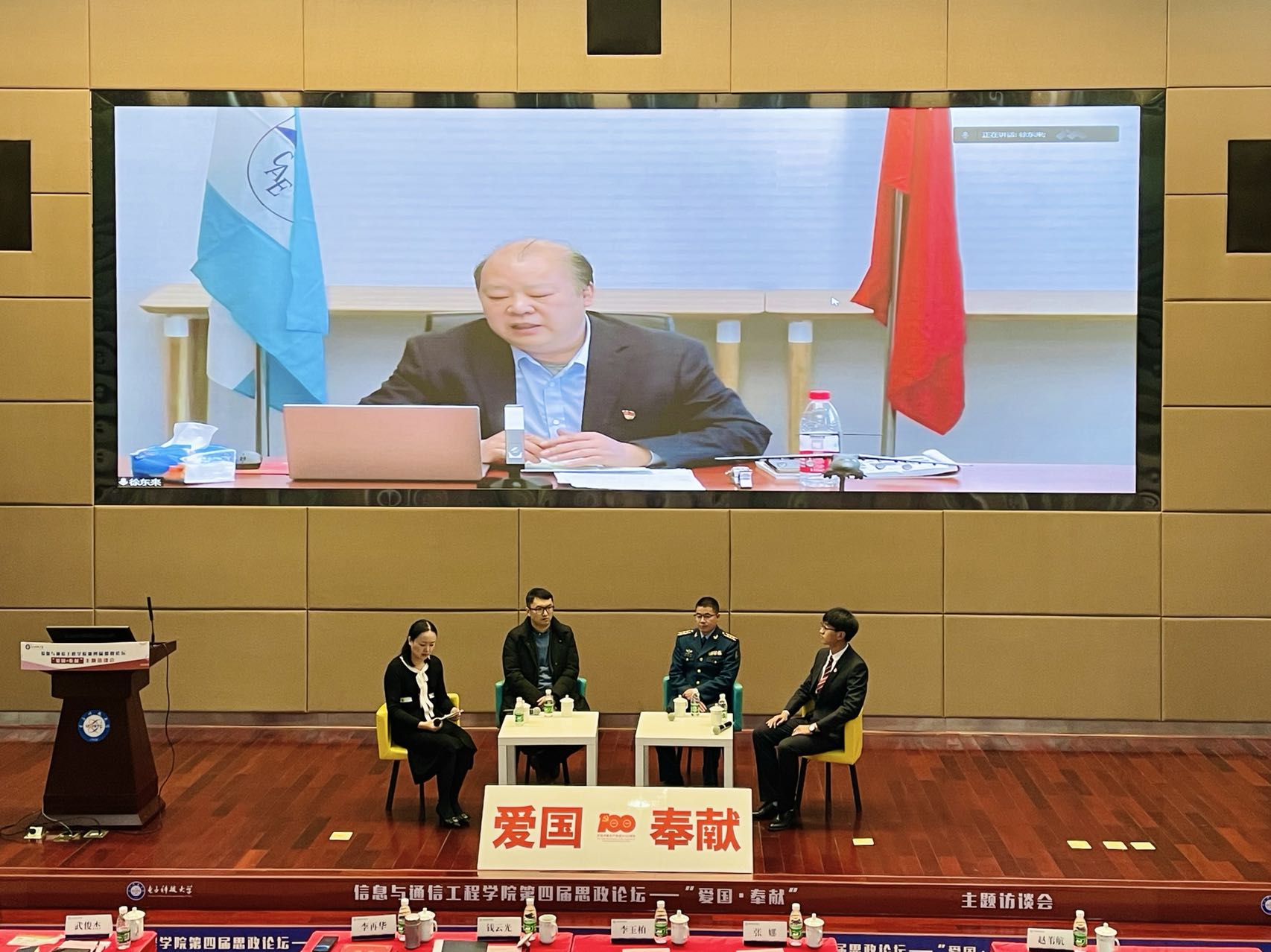 为深入学习贯彻习近平总书记在庆祝中国共产党成立100周年大会上的重要讲话和党的十九届六中全会精神及《决议》,让广大师生深入了解党和国家的发展历程、宝贵经验和伟大成就,12月27日,新葡的京集团35222vip在清水河校区图书馆求实厅举办第四届思政论坛“爱国·奉献”主题访谈会,此次活动通过线上下结合的方式进行。中国航空研究公司党委书记徐东来、空军雷达兵某旅政治工作部主任李再华、新葡的京集团35222vip电子工程系主任武俊杰、校青协主席赵苇航等四位嘉宾围绕“爱国 奉献”作主题分享和访谈交流。公司党委员工工作部部长钱云光、党委宣传部副部长张娜、公司党委书记李玉柏等嘉宾出席活动,本次访谈会由公司党委副书记杨晓玲主持。