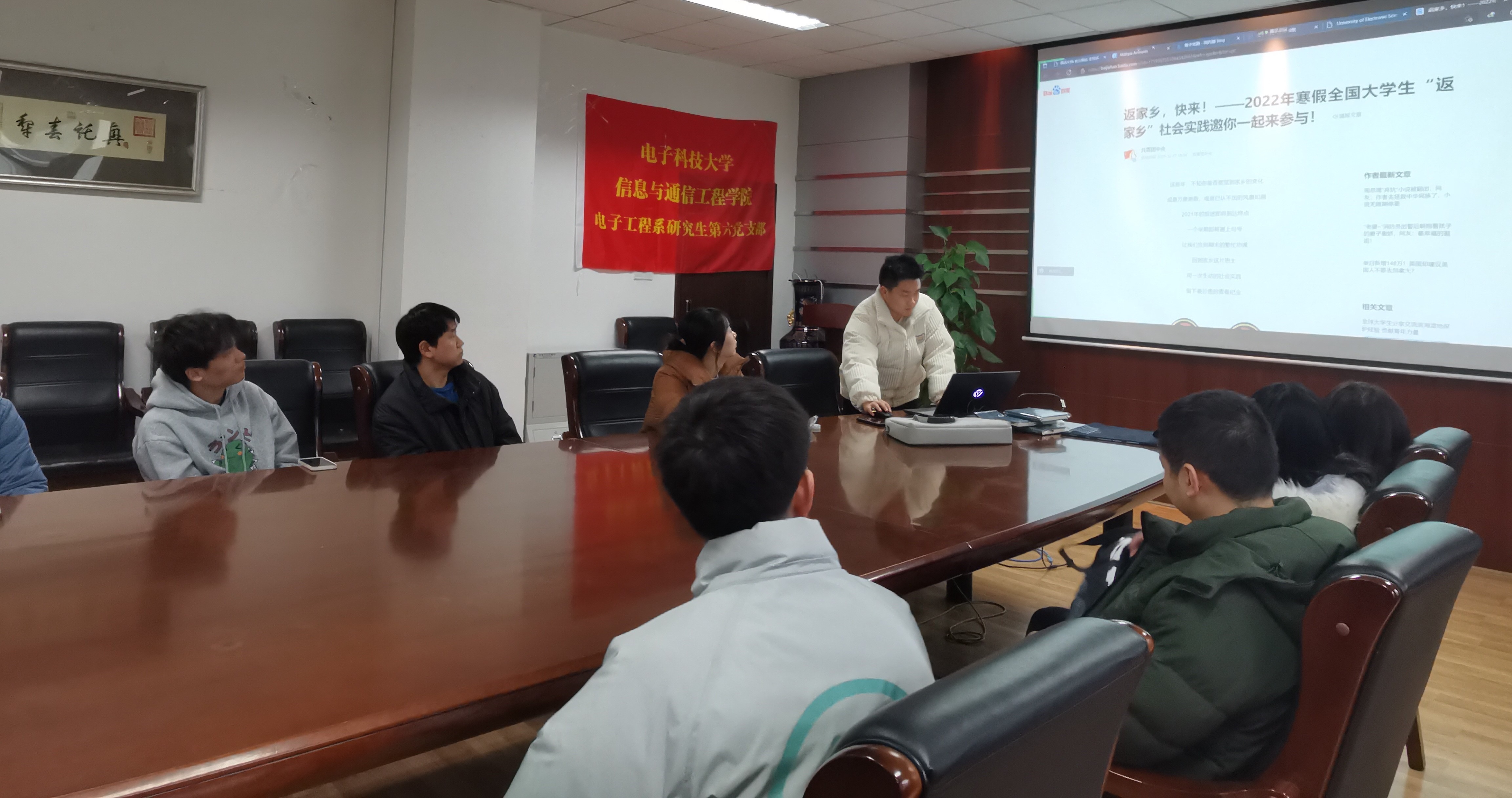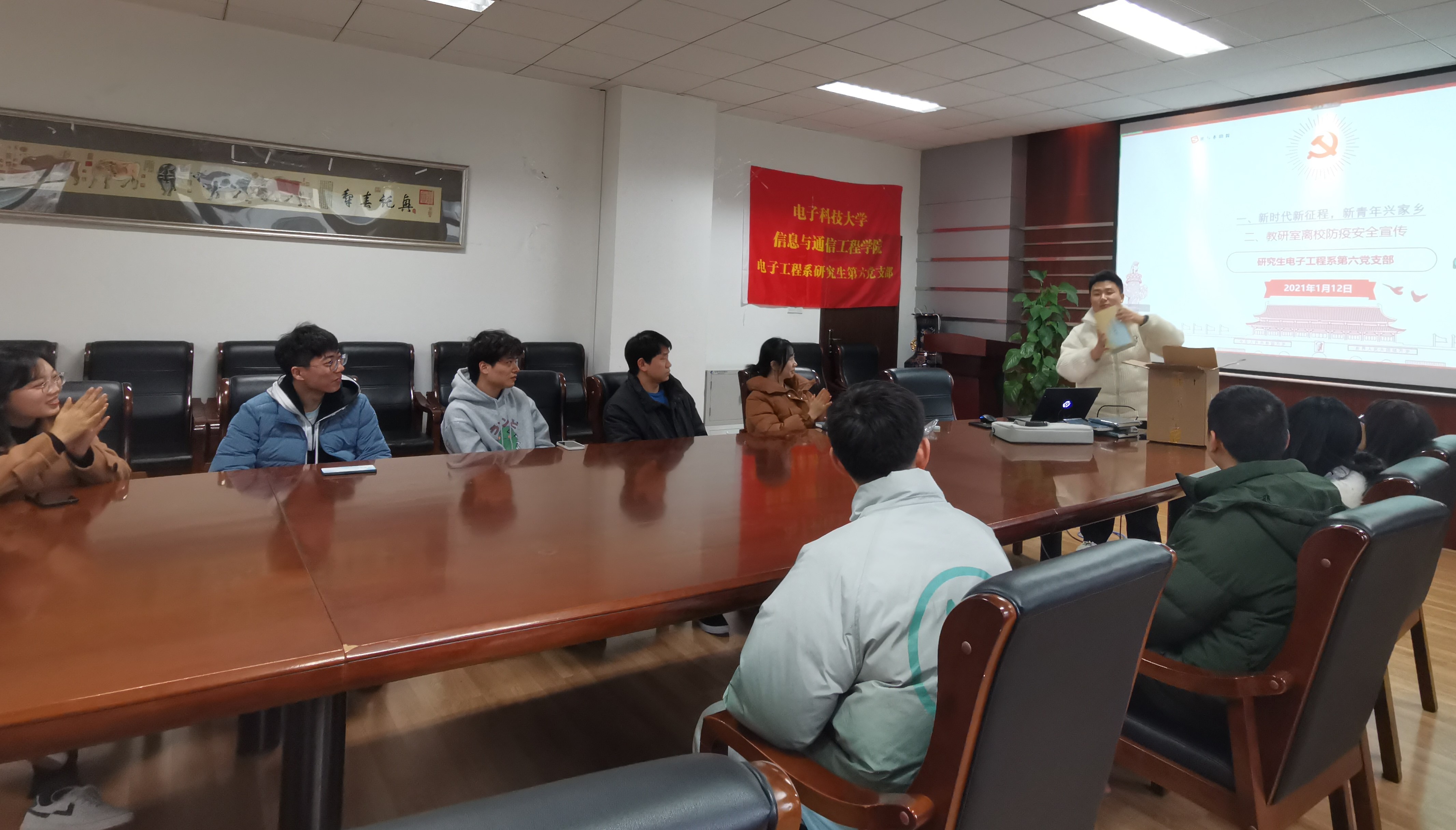 为贯彻习近平新时代中国特色社会主义思想,深入学习党的十九届六中全会精神,认真落实习近平总书记关于青年工作的重要思想,新葡的京集团35222vip电子工程系研究生第六党支部于2022年1月12日在kb220会议室举行了“回望总结过去,走好崭新征程”的主题党日活动。