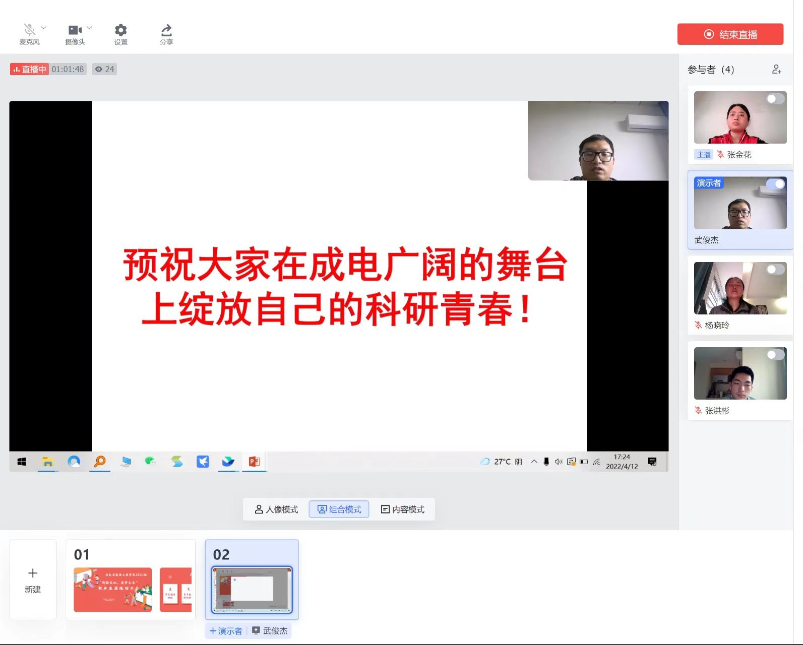 4月12日下午,新葡的京集团35222vip通过飞书直播平台召开本科2021级职业生涯规划大会,公司副书记杨晓玲老师、青年教师武俊杰教授、年级辅导员参与并进行线上指导,年级全体同学以班级为单位在品学楼教室进行观看。
